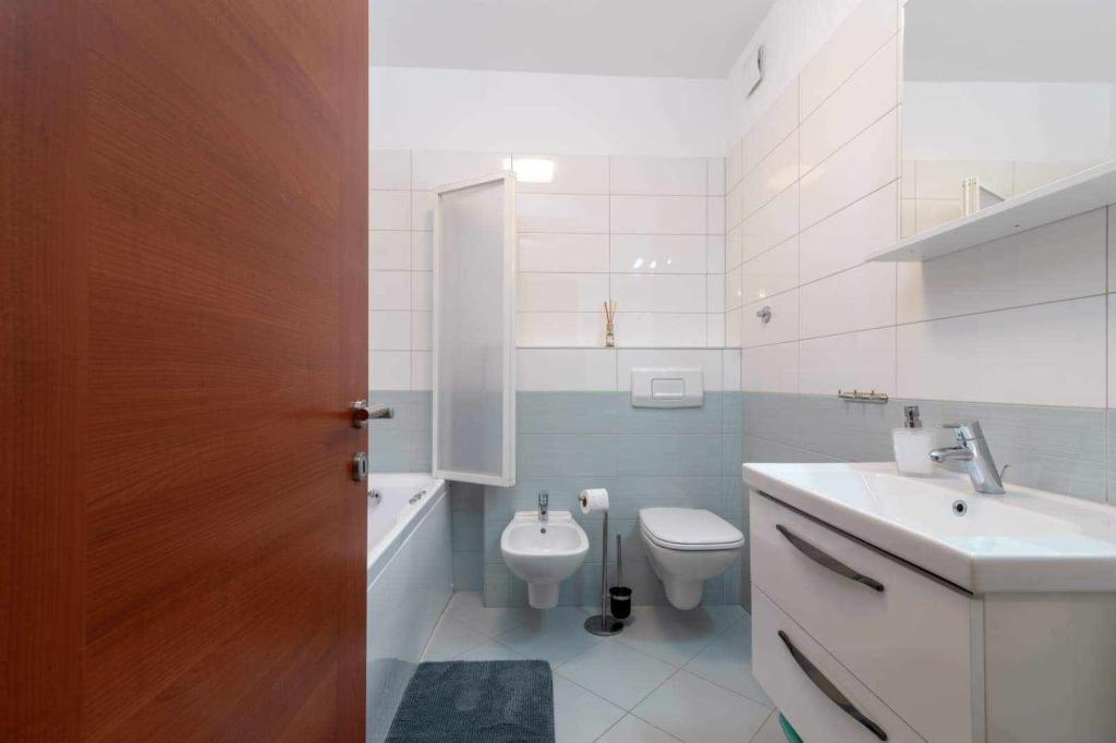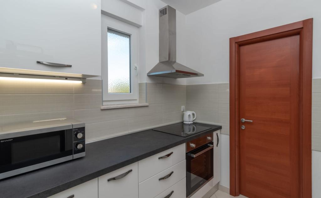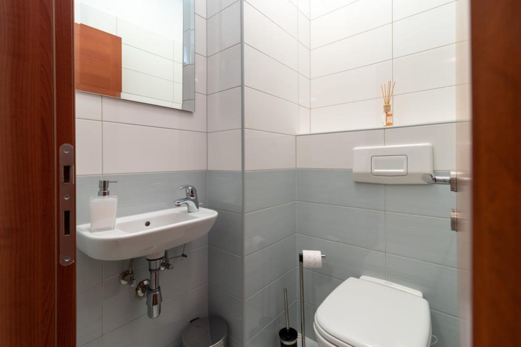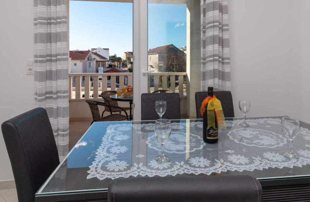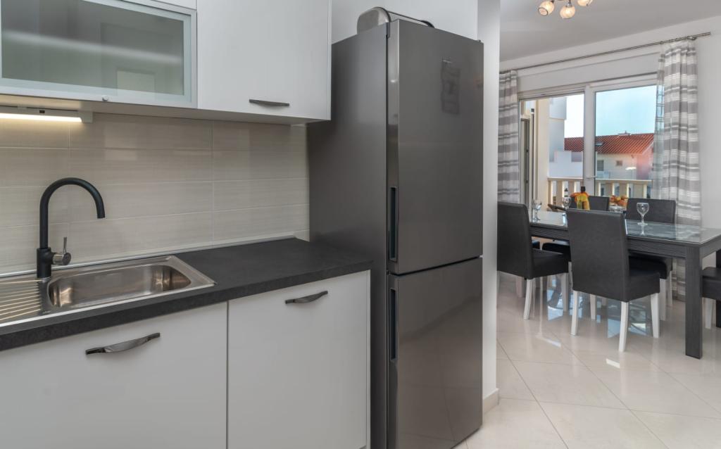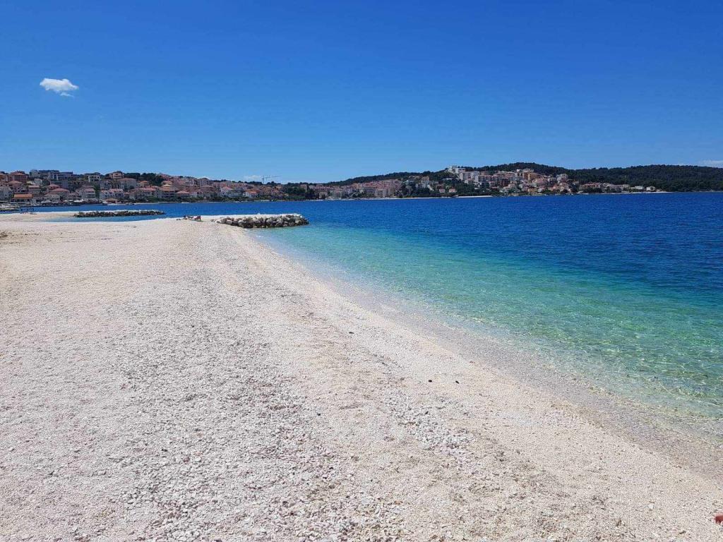 El apartamento está situado en la isla de Čiovo, en una tranquila bahía de Okrug Gornji – Rastići, ideal para unas vacaciones en familia. Se encuentra a 200 m de playas rocosas y a 400 m de playas de arena, mientras que la famosa playa de Copacabana está a 1,6 km. La ciudad de Trogir, declarada Patrimonio de la Humanidad por la UNESCO, está a pocos kilómetros. El apartamento, ubicado en la primera planta, tiene una superficie de 72,5 m² con un balcón de 7 m² y capacidad para un máximo de 6 personas (7 si es necesario), incluyendo una cuna. Los huéspedes pueden disfrutar de aire acondicionado, wifi gratuito y aparcamiento privado. Una característica especial del apartamento es el gimnasio y la sala de juegos en el sótano, incluidos en el precio, equipados con máquinas de ejercicio, elíptica, futbolín, dardos y una bicicleta, ideales para el ocio y la diversión familiar.