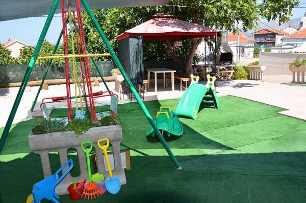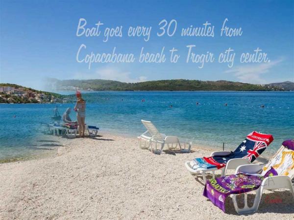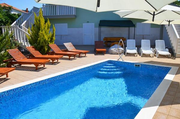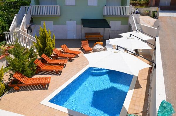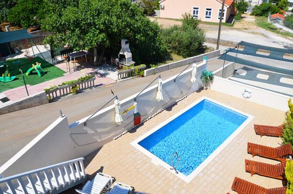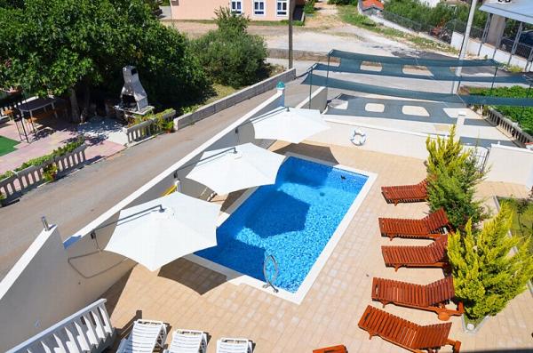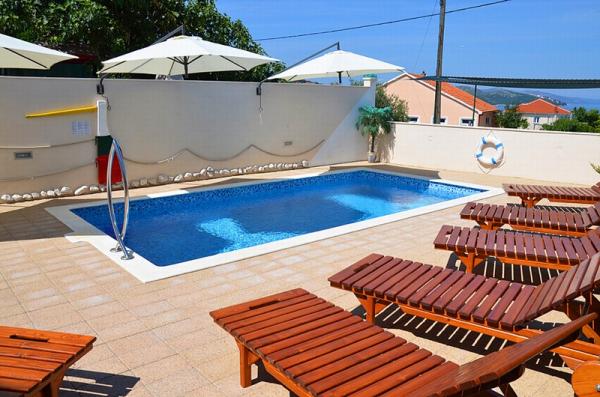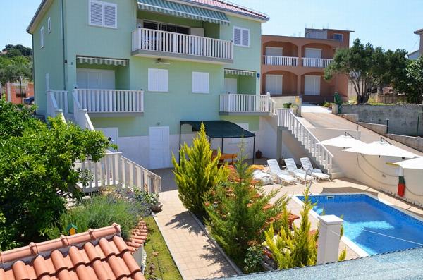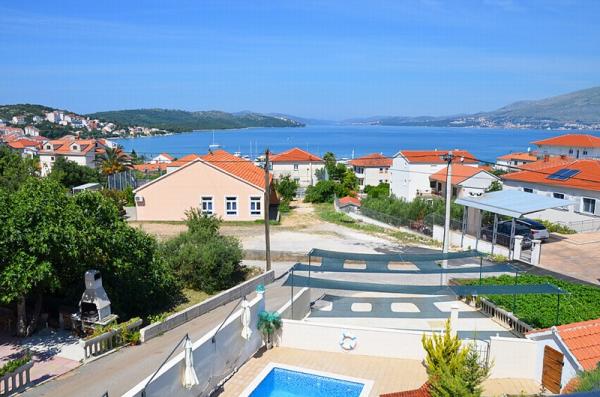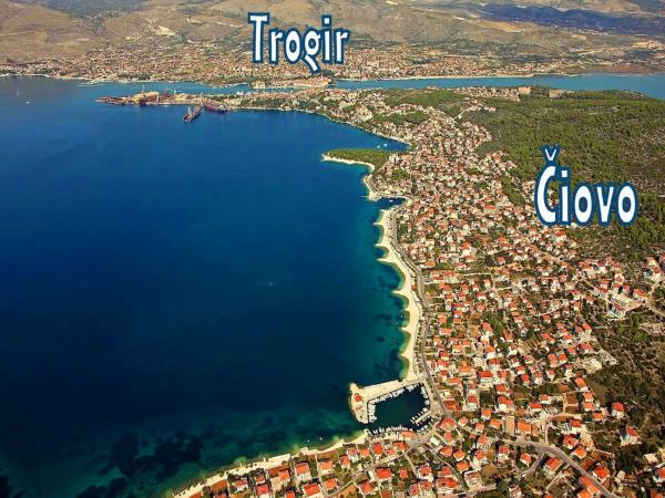 Casa de nueva construcción con piscina y un alojamiento exclusivo de 3 apartamentos situados en Okrug Gornji en la isla de Ciovo cerca del antiguo pueblo y la ciudad. A tan sólo 200 metros de la casa hay restaurantes, un mercado, correos, médico, farmacia, tiendas, oficina de turismo, una panadería y un salón de belleza y peluquería. Dos 4 1 apartamento puede alojar a dos familias. Hay una gran terraza lo suficientemente grande para todos nosotros disfrutar de las cálidas noches en Croacia. La playa más popular de Copacabana se encuentra a 200 metros de la casa. La estación de autobuses está a 20 metros de la casa. El barco, que sale cada 15 minutos desde el puerto Toc le llevará al centro de la ciudad, ideal para los huéspedes sin coche. Los huéspedes tienen a su disposición, una piscina para niños pequeños de plástico, parque infantil, cama elástica, piscina para adultos y una plaza de aparcamiento. Trona para niños y sillas de paseo también están disponibles bajo petición. Familia Prga le da la bienvenida !!!
