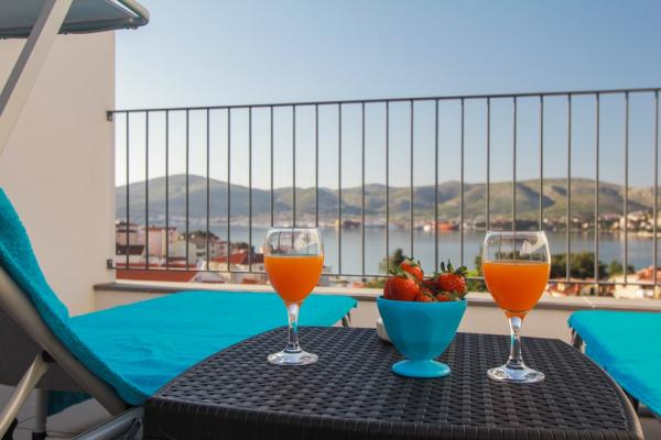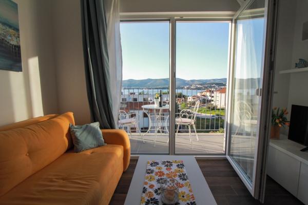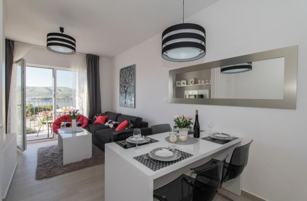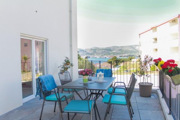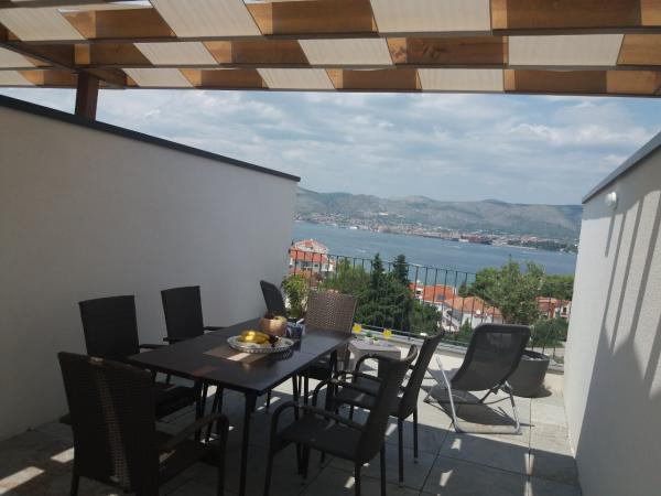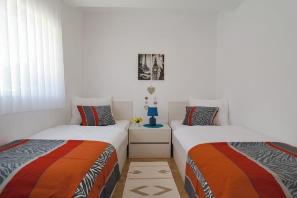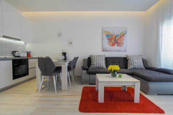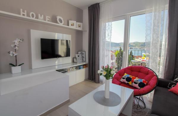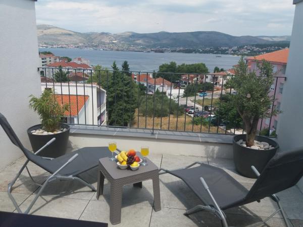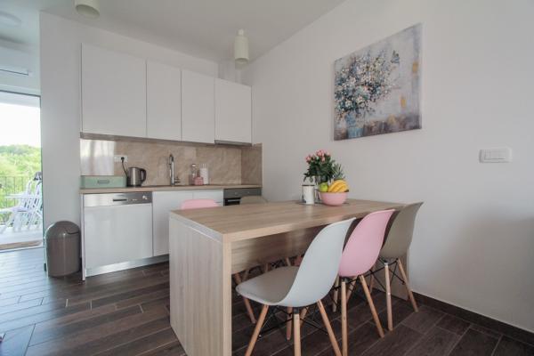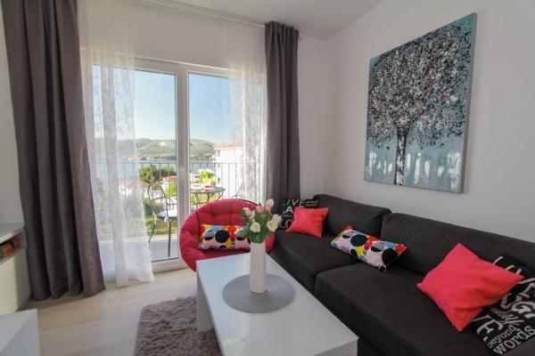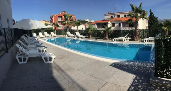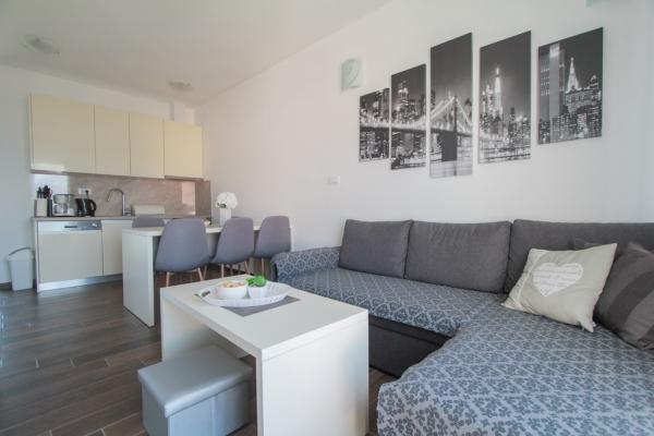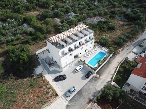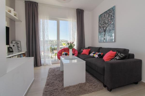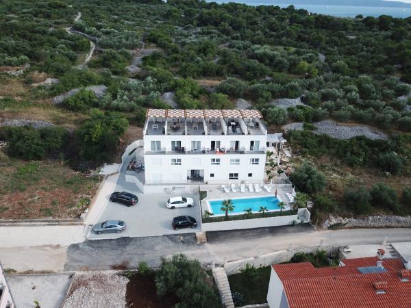 Los nuevos apartamentos de dos dormitorios se encuentran en una zona tranquila de Okrug Gornji, a solo 5 minutos a pie de la playa en la bahía de Okruška y a 10 minutos de la playa de Tatinje. . Los apartamentos están amueblados de forma moderna, con cocinas totalmente equipadas. Las suites de seis pisos tienen cada una su propia terraza de 25 m2 con una hermosa vista al mar, y hay una barbacoa y un juego de asientos. Dos apartamentos en la planta baja también tienen una terraza con vista al mar, barbacoa y asientos. En frente del edificio hay una piscina con agua salada de 50 m2. En mayo y octubre se calentará el agua de la piscina. Beplatan wifi. En el patio del edificio hay una plaza de aparcamiento para cada apartamento.