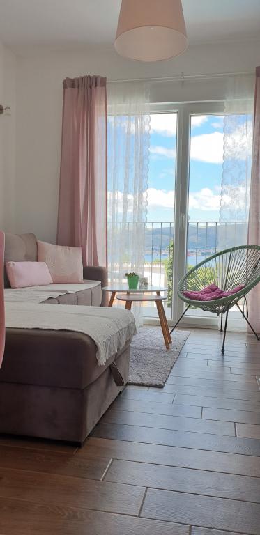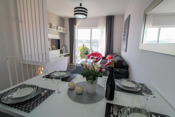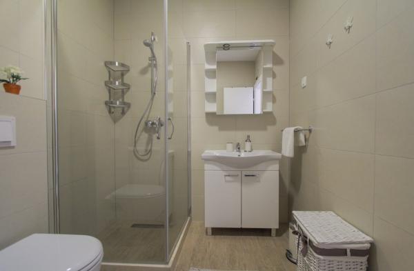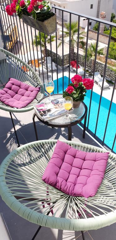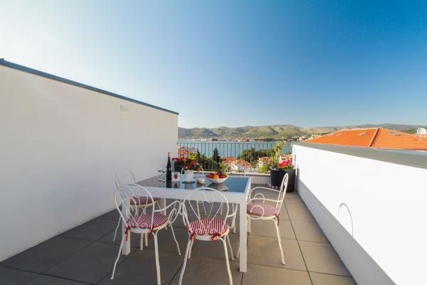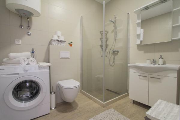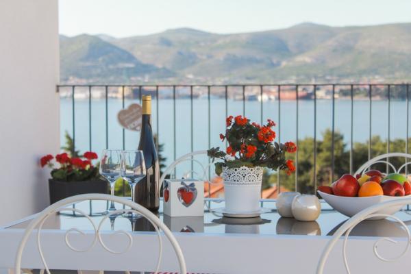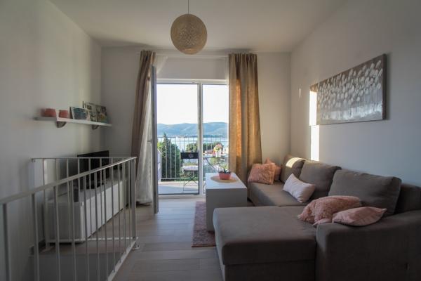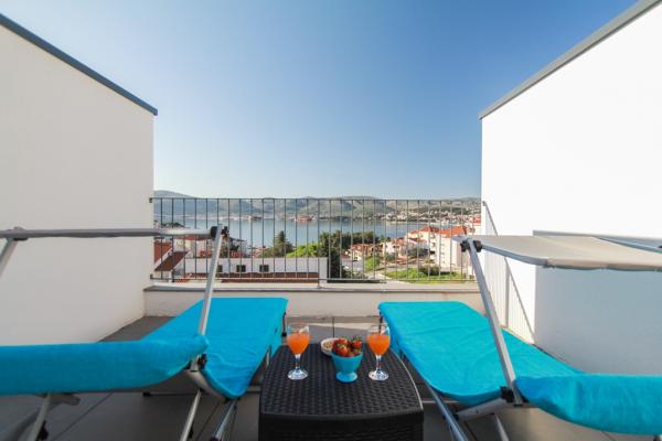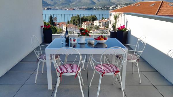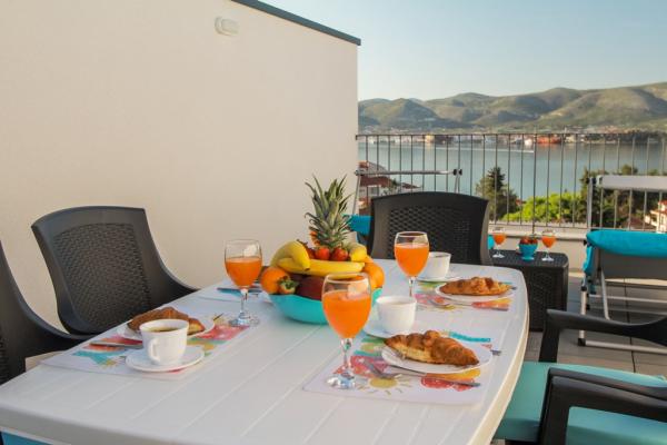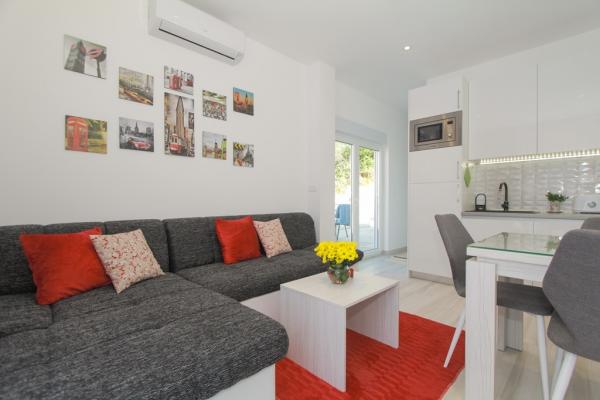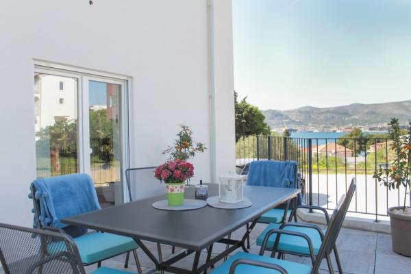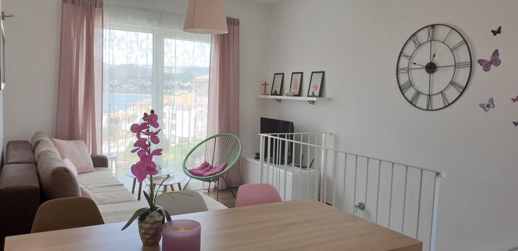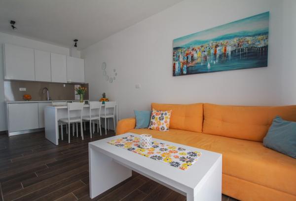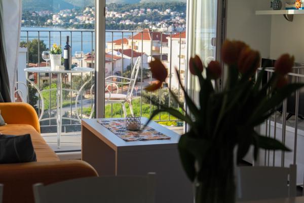 Los nuevos apartamentos de dos dormitorios se encuentran en una zona tranquila de Okrug Gornji, a solo 5 minutos a pie de la playa en la bahía de Okruška y a 10 minutos de la playa de Tatinje. . Los apartamentos están amueblados de forma moderna, con cocinas totalmente equipadas. Las suites de seis pisos tienen cada una su propia terraza de 25 m2 con una hermosa vista al mar, y hay una barbacoa y un juego de asientos. Dos apartamentos en la planta baja también tienen una terraza con vista al mar, barbacoa y asientos. En frente del edificio hay una piscina con agua salada de 50 m2. En mayo y octubre se calentará el agua de la piscina. Beplatan wifi. En el patio del edificio hay una plaza de aparcamiento para cada apartamento.