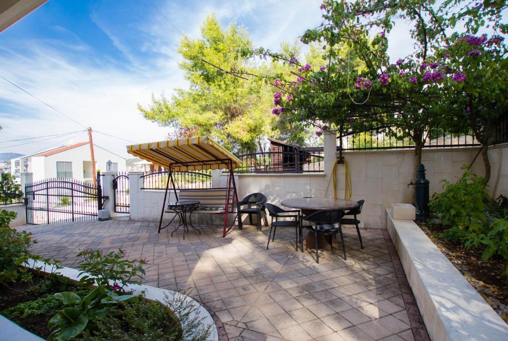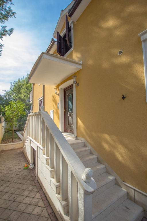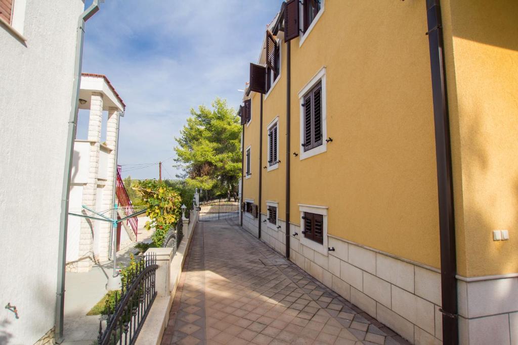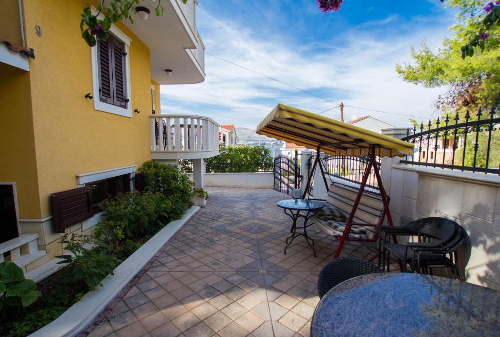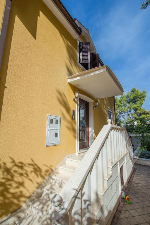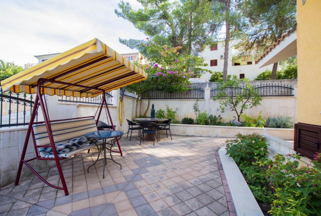 Los apartamentos Anika 1 y 2 se encuentran en la isla de Ciovo, en una zona tranquila, a solo 50 metros del mar. El establecimiento se encuentra a 5 minutos a pie de los primeros restaurantes, tiendas y locales de ocio. Los apartamentos están ubicados en el segundo piso para el cual los huéspedes tienen una entrada separada. Cada apartamento consta de dos dormitorios y un baño. Ambas habitaciones tienen aire acondicionado y acceso a terrazas con vistas al mar y al bosque. Las habitaciones también incluyen TV junto con televisión por satélite y acceso ilimitado a Internet. Cada apartamento también tiene su propia cocina, que está equipada con cubiertos para 6 personas, una nevera, un hervidor de agua, un horno y todo lo que necesita en la cocina. El aparcamiento está incluido en el precio. A su disposición hay un pabellón debajo del cual hay una parrilla y una mesa grande para 12 personas, ideal para comidas conjuntas y socialización. También hay un columpio debajo del pabellón y un pequeño columpio para niños.