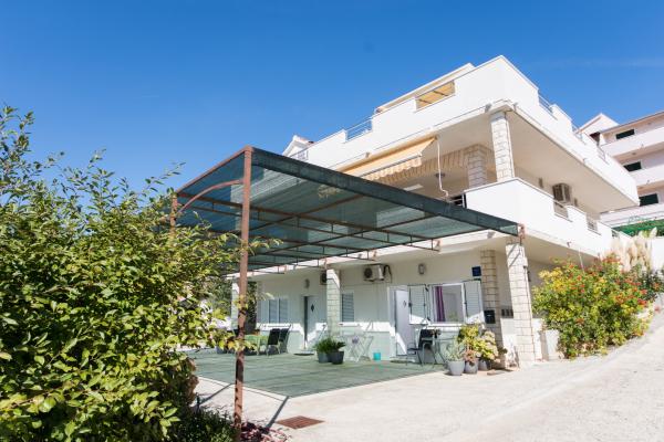 Mise familia Casa ubicada en Okrug Gornji, de Trogir de 2 km. La casa es un apartamento para 4 1 persona, y habitación con baño para 2 personas. Para muchas personas, es posible alquilar un apartamento y una sala de juntas. La casa familiar está situado a 100 m de la playa. (La playa se encuentra al principio de la calle) Apartamento y habitaciones se encuentran en la planta baja, totalmente amueblado y equipado con aire acondicionado, TV vía satélite y conexión inalámbrica a Internet. Los huéspedes aparcamiento y utilizar la parrilla.