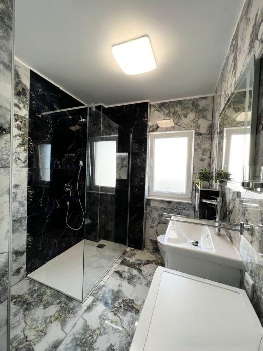 El moderno ático deleita con su elegante diseño y espectacular vista a las islas. El amplio salón incluye muebles modernos y confortables, aire acondicionado y un gran televisor de 190 cm, creando un ambiente agradable. Grandes paredes correderas ofrecen una increíble vista panorámica de las islas, impregnando el espacio de luz natural. La cocina está equipada con los electrodomésticos más modernos, el comedor es espacioso y permite disfrutar de las comidas con una fascinante vista al mar. Cuenta con tres cómodas habitaciones, cada una equipada con una lujosa cama, TV y aire acondicionado para el completo confort de los huéspedes. El cuarto de baño con ducha a ras de suelo proporciona una lujosa experiencia de relajación, mientras que el aseo independiente aumenta la comodidad. Un gran balcón con muebles de jardín y un columpio es el lugar perfecto para relajarse y disfrutar del amanecer y el atardecer con una vista fabulosa de las islas. Este apartamento representa una combinación de estilo moderno, confort e increíble belleza natural, brindando una experiencia inolvidable de estadía junto a la costa.