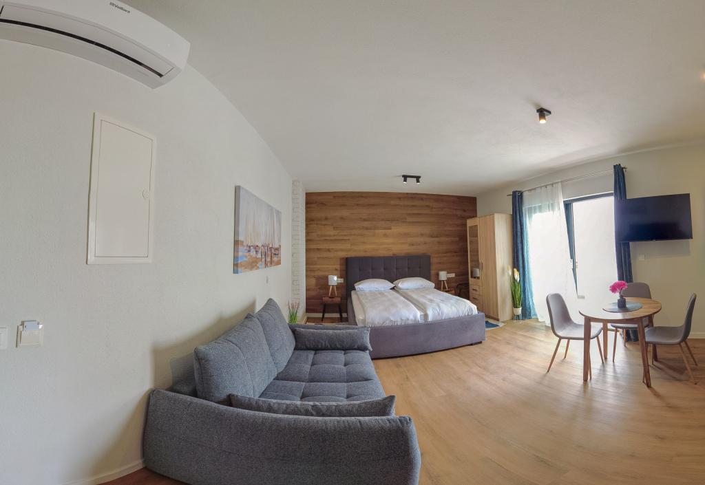 Leer más Unidades de alojamientoPuede reservar por teléfono o correo electrónico. Para confirmar la reserva, deberá abonar el 20% del precio total como garantía de llegada en la cuenta bancaria que le garantizamos, y el resto del importe se abonará el primer día tras su llegada. La estancia en el apartamento comienza a las 14:00 h del primer día de estancia y finaliza a las 10:00 h del último día. El último día, es decir, el día de salida del apartamento, no se computará para el total de días de estancia. La ropa de cama se cambia a la salida, y los huéspedes que se alojen 14 días o más recibirán la ropa de cama el séptimo día para que se la cambien ellos mismos. Las toallas se cambian cada 3 días. El anfitrión limpia y organiza a fondo el apartamento con cada cambio de huéspedes. La ropa de cama, las toallas, las bolsas de basura, el papel higiénico y las pastillas para la lavadora se proporcionan a los huéspedes a su llegada, y el resto de las cantidades las proporcionarán ellos mismos.