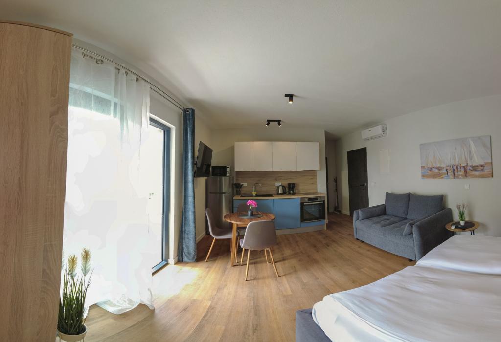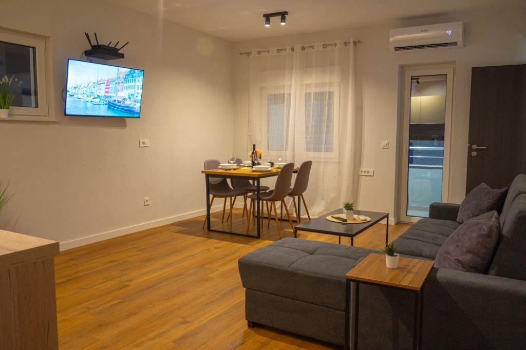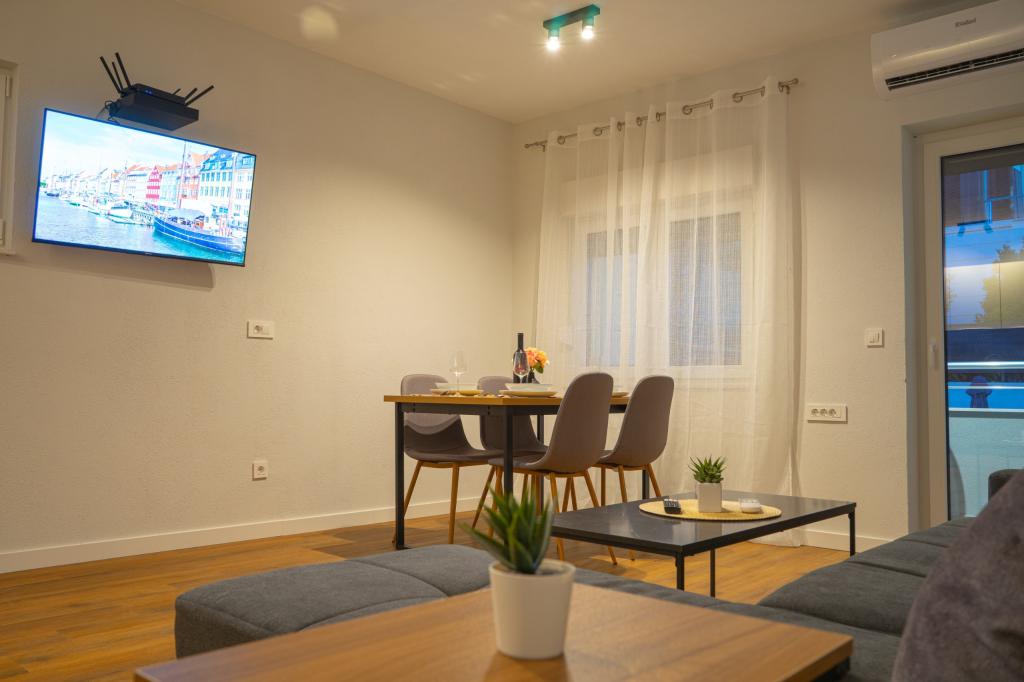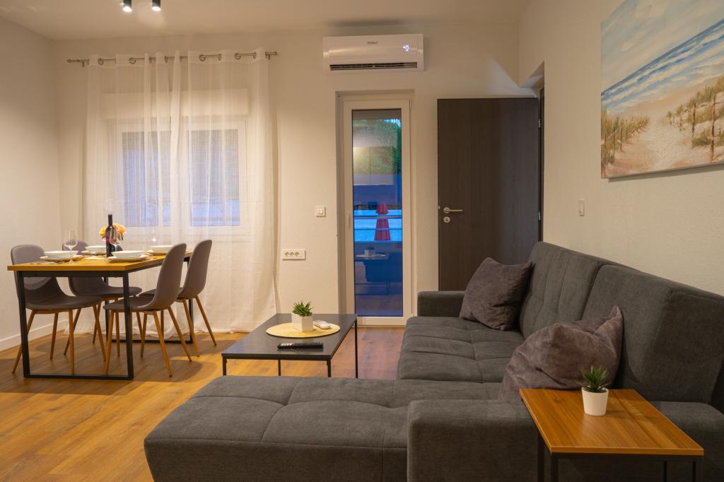 Bienvenidos a Apartamentos Neli, apartamentos ubicados en la encantadora isla de Čiovo, conectada al continente por dos puentes. A solo 2,5 km del histórico pueblo de Trogir. Edificio recién decorado, completamente renovado en 2023. Lujosos y modernos apartamentos recién decorados. Las habitaciones son cómodas y elegantes, con camas nuevas y colchones ergonómicos. Las cocinas están totalmente equipadas con electrodomésticos modernos, lavavajillas y todo lo necesario para preparar comidas. Cada baño cuenta con lavadora. Cada apartamento tiene un balcón con vistas al mar para relajarse. Además, cuenta con piscina climatizada, tumbonas, ducha solar, barbacoa al aire libre para preparar delicias inolvidables y aparcamiento privado con videovigilancia. La playa, los restaurantes y las tiendas están a 200 metros, a 7 minutos a pie. Apartamentos Neli le ofrece todo lo necesario para unas vacaciones cómodas y recuerdos inolvidables.