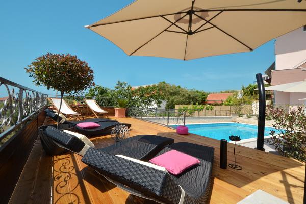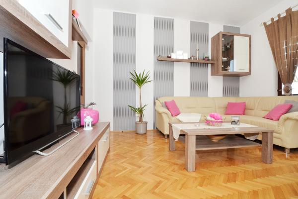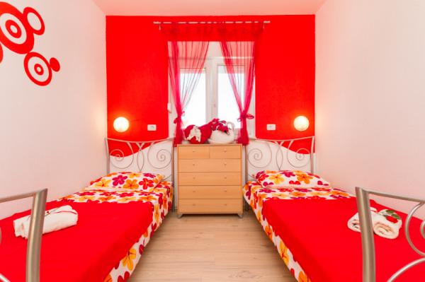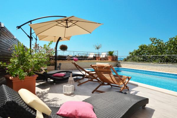 Los apartamentos Tomy se encuentran en Okrug Gornji, en la isla de Ciovo (conectada por tierra firme), a solo 550 m del mar ya 200 m del centro de la ciudad. Los huéspedes tienen dos apartamentos de tres habitaciones y un apartamento de dos habitaciones. En frente de la casa hay una gran piscina de hidromasaje de 35m2 equipada con tumbonas, columpios, mesa y sillas y una barbacoa.