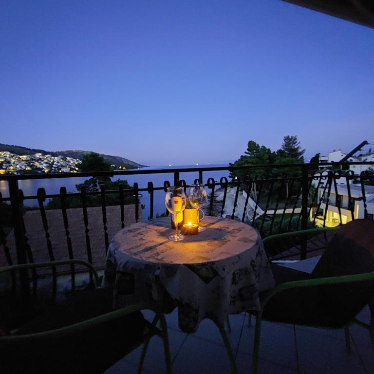 Los apartamentos Toni están situados en un entorno extremadamente tranquilo, a sólo 30 metros del mar. Justo debajo del apartamento hay una hermosa playa de guijarros, y en el lado izquierdo y derecho de la playa hay rocas marinas. El mar es cristalino. El apartamento ofrece una vista maravillosa del mar y las islas. Cualquiera que venga tiene las condiciones perfectas para unas vacaciones ideales en paz. Los apartamentos disponen de aire acondicionado. El aparcamiento y la conexión Wi-Fi son gratuitos.