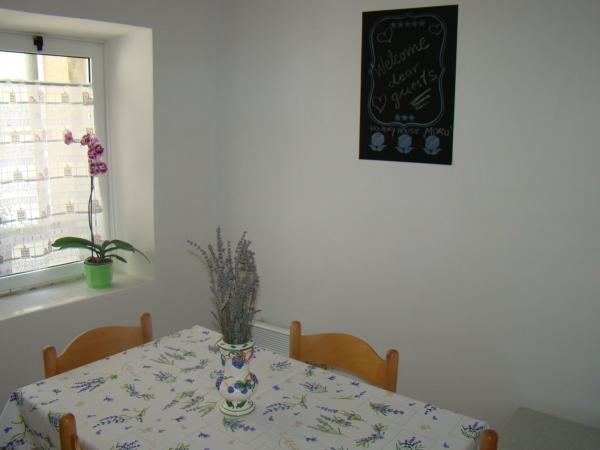 Casa Moro se encuentra en un pequeño pueblo Orlec en la isla. En tres plantas. Al principio hay vestíbulo, salón, cocina, comedor, aseo, baño y cocina. En la segunda escalera de madera de agua baja y hay 3 dormitorios y un baño. En el tercer piso también escaleras de madera de agua, y hay un cuarto dormitorio y una sala para la relajación, el descanso y el entretenimiento, que está equipado con juegos de mesa. Desde esta sala se puede salir a la terraza que tiene una vista maravillosa del pueblo, el mar y las islas circundantes. Hay dos aparatos de aire acondicionado que puede enfriar toda la casa. La casa está equipada con televisión vía satélite e Internet. El patio es una mesa de piedra con sillas y barbacoa.