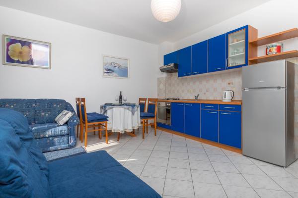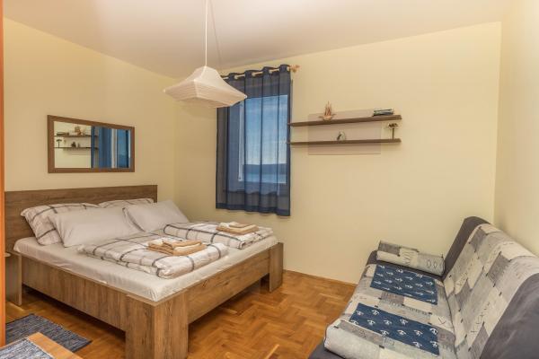 El apartamento Adria LiLa está amueblado y equipado para satisfacer las necesidades de un huésped contemporáneo. Se encuentra en la parte tranquila de Dramalj, un encantador complejo turístico, a 3 km del centro de Crikvenica. La playa de guijarros más cercana de Pazdehova está a 300 m, mientras que la playa natural más famosa de Kačjak se encuentra a 20 minutos a pie o 1 km en coche. El apartamento tiene la entrada principal desde el lado norte, que se encuentra al nivel del apartamento ubicado en el 3er piso del edificio. El apartamento consta de una cocina totalmente equipada con una sala de estar, un cómodo dormitorio (cama de 160x200) y un sofá cama, una cama adicional en la sala de estar para 2 personas, un baño y una litera con una hermosa vista del mar, la península de Kačjak y la isla de Krk. . El apartamento está equipado con aire acondicionado, televisión satelital, internet inalámbrico Wi-Fi y en frente del edificio se encuentra su propio espacio de estacionamiento.