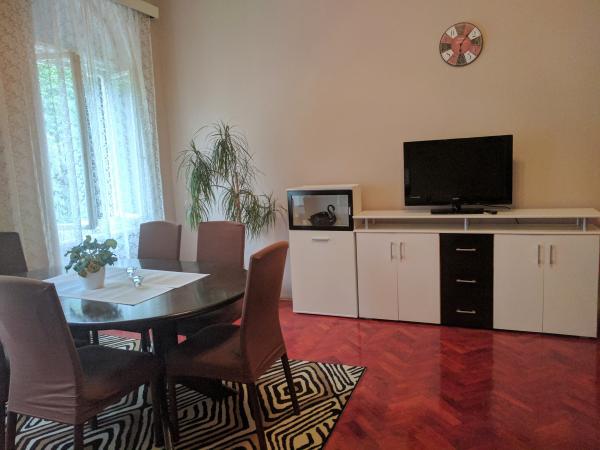 El apartamento está situado en el segundo piso de la casa, que está en el centro de Crikvenica, en primera línea de mar. El apartamento es de 80 metros cuadrados. La playa está a 30 metros del apartamento. Consiste en un pasillo, dos dormitorios con balcón, baño, cocina y sala de estar. En las dos habitaciones con una cama doble en el apartamento 4 personas. El sofá en la sala de estar se puede estirar y puede alojar a 2 personas. Es posible acomodar 6-7 personas. (Posible uso de una cama supletoria).