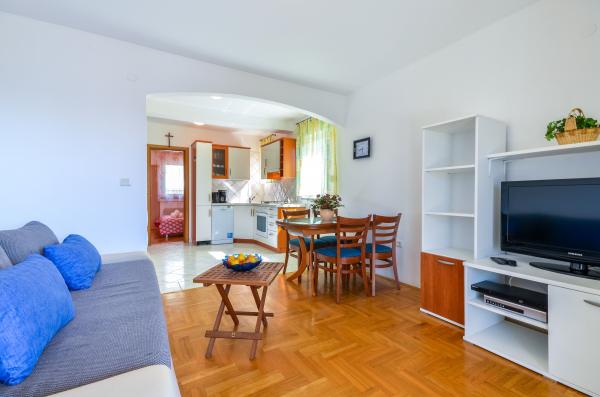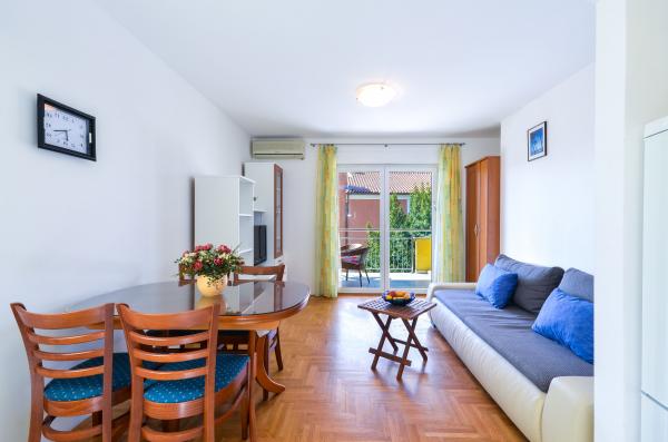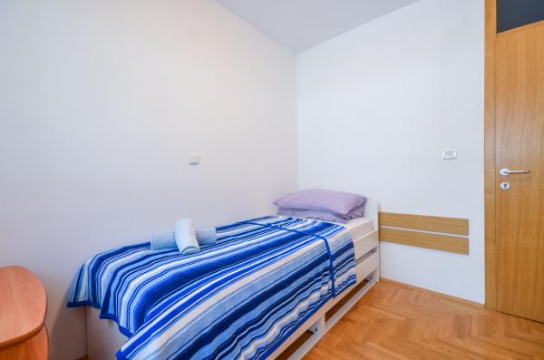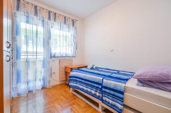 El apartamento Valerija está ubicado en una calle empedrada aislada, ubicada en la primera fila del mar en la famosa playa de arena de Crikvenica "Crni Mol". Cerca hay varios cafés ubicados junto al mar, así como numerosos restaurantes que ofrecen bocadillos rápidos y lentos. Junto al apartamento también hay un pequeño mercado con alimentos básicos y artículos de higiene, así como una panadería que funciona casi las 24 horas. El centro de la ciudad está a unos 600 m de distancia o diez minutos de relajantes paseos por el lado del mar. El apartamento tiene dos habitaciones separadas, una con cama de matrimonio y otra con dos camas individuales. El baño tiene una ducha y un lavabo con un inodoro. La cocina está totalmente equipada con utensilios, la nevera tiene un congelador y hay una cocina de agua, horno, cocina a gas, lavavajillas y cafetera. En la misma habitación hay un comedor y un sofá cama para dos personas. Para el desayuno, o para una cena relajante con una copa de vino, hay una terraza para 6 personas con vistas al mar. Aire acondicionado, TV y wifi.