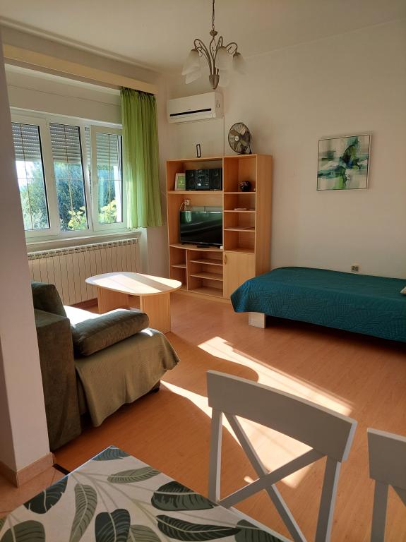 Apartments Sandra están situados en una casa unifamiliar. Desde la ciudad se encuentra a 1,5 km de la playa de arena está a sólo 2 minutos a pie. Muy cerca se encuentra una gran variedad de instalaciones de ocio y recreo, supermercado, restaurante, pequeno puerto, Talasoterapia. Los huéspedes pueden elegir entre dos modernos apartamentos: Apartamento en planta baja con entrada independiente, los huéspedes pueden utilizar la terraza del jardín o apartamento en la primera piso con un balcón con vistas al mar. En apartamento en la planta baja son agradables y pequeñas mascotas!