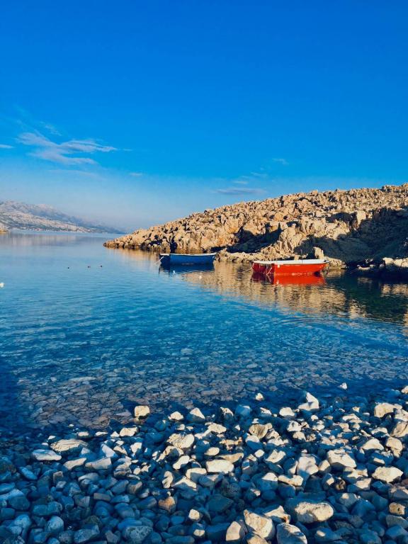 Apartamentos modernos recién amueblados (2) en un lugar tranquilo Stara Vas en la isla de Pag. El lugar está a 3 km de la playa y las tiendas (Dinjiška). Es ideal para relajarse en la terraza, en silencio con vistas al mar. Si está buscando un descanso de las multitudes y el ruido, está en el lugar correcto. Si busca diversión o le interesan los lugares de interés y la historia, la ciudad de Pag está a 11 kilómetros de distancia. Las instalaciones están completamente decoradas; constan de salón, cocina, dormitorio, baño y terraza. El salón contiene un sofá con posibilidad de estiramiento, Smart TV, caja fuerte, aire acondicionado. Cocina con lavavajillas, vitrocerámica, horno, frigorífico grande, cafetera de filtro, hervidor de agua. Dormitorio con cama de matrimonio, dos mesitas de noche y dos lámparas de noche, armario y cómoda extra. Baño equipado con lavadora (plancha y secador de pelo disponibles). Tetrace con muebles de exterior. - Wi-fi disponible - Estacionamiento gratuito - Posibilidad de usar chimenea al aire libre (parrilla)