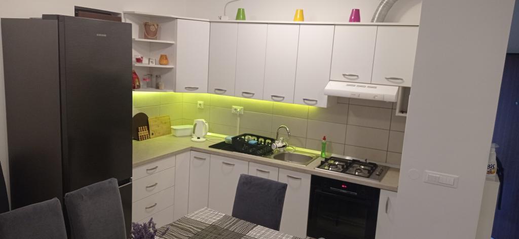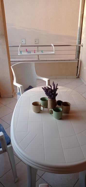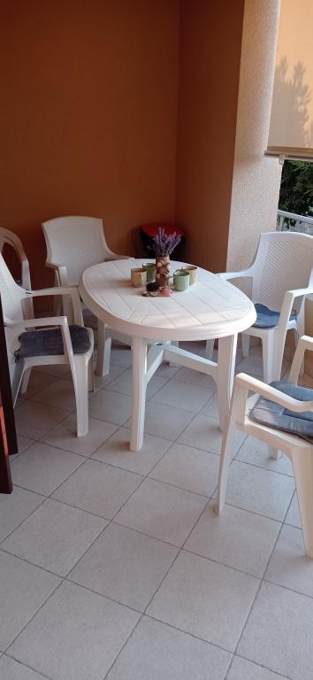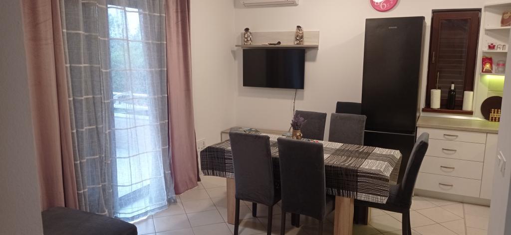 El apartamento está situado en un tranquilo complejo de apartamentos en la planta baja de un edificio. Se encuentra completamente amueblado con electrodomésticos para su uso. El establecimiento está situado a 250 m de la primera playa rocosa y a 2 minutos en coche de la playa de arena del centro de la ciudad. En el centro hay una tienda, un restaurante, 2 cafeterías en la playa y una iglesia. También hay un paseo marítimo recientemente renovado a lo largo del mar desde los apartamentos hasta el centro. La isla es ideal para las vacaciones de verano porque es ideal para ciclistas, caminar y correr en la parte superior de la isla. Numerosos lugares de interés.