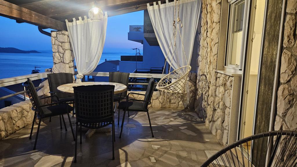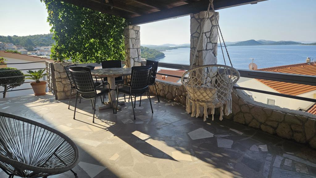 Apartamentos totalmente equipados de forma moderna en una zona tranquila con una hermosa vista al mar que se extiende hasta Kornati. Los apartamentos están situados en segunda fila frente al mar, por lo que sólo hay que bajar las escaleras hasta el mar, donde hay playas pavimentadas, un mar cristalino y una hermosa sombra y olor a pinos. Y en las inmediaciones hay una playa de guijarros, que es un verdadero paraíso para los niños. Todos nuestros apartamentos cuentan con estacionamiento seguro y los huéspedes también pueden utilizar la parrilla común. Los restaurantes y cafeterías de la playa están a 5 minutos. , y la tienda más cercana está a 10 minutos a pie.