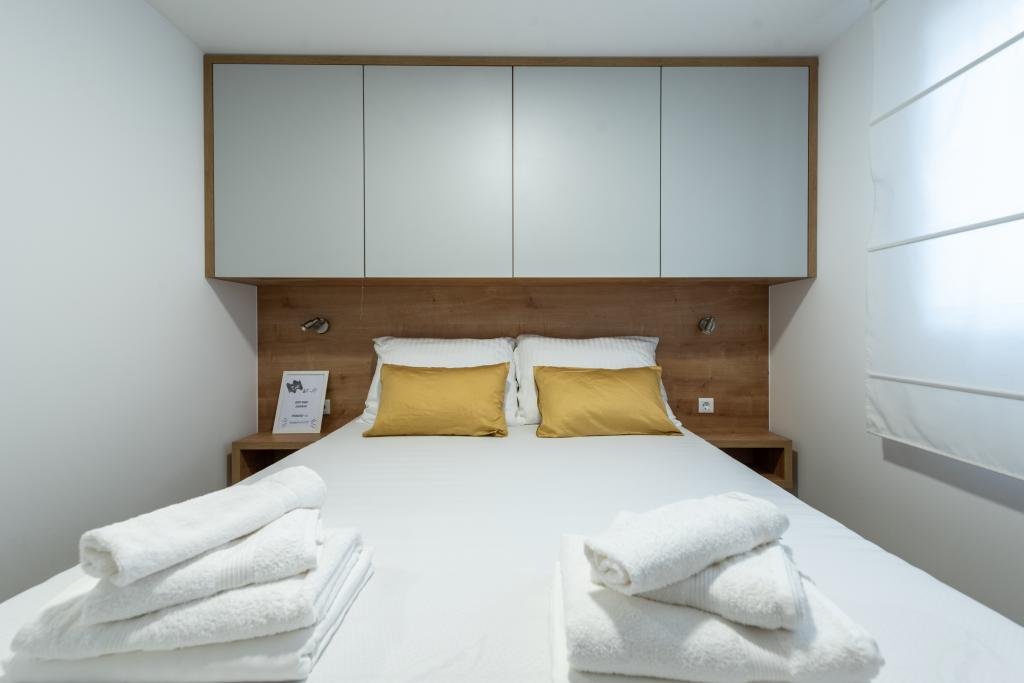 Una lujosa casa móvil, modernamente equipada con una hermosa terraza que satisfará todos los gustos. La casa móvil está situada en el camping "Oaza mira", en una ubicación privilegiada en un sombrío bosque de pinos, a solo 50 m de la hermosa playa. En las inmediaciones hay una gran piscina y numerosas instalaciones deportivas (pista de tenis, pista de petanca, parque infantil). El campamento dispone de un restaurante, un supermercado y unas amplias instalaciones sanitarias con lavandería. Las casas disponen cada una de dos habitaciones, una habitación con cama de matrimonio y una habitación con dos camas individuales. En el salón, el sofá de esquina puede servir como cama supletoria para dos personas más. La casa tiene un amplio salón, una cocina con vajilla, estufa y refrigerador, y uno o dos baños con ducha, lavabo e inodoro. La casa móvil dispone de un jardín con terraza y marquesina.
