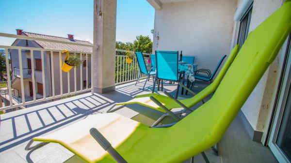Tasa turistica está incluida en el precio.Puede aprovechar al máximo la natación y el sol, ya que está cerca de la playa y depende de usted decidir qué playa elegir para los guijarros, arenas, rocas. El apartamento es amplio y está totalmente equipado, la cocina tiene todo (nevera, horno, lavadora, tostadora ...), mesa de comedor en el apartamento y en la terraza, barbacoa, conexión Wi-Fi gratuita, TV de pantalla plana vía satélite, tableta, caja fuerte, cuna ... El apartamento de lujo Stella tiene 100 m2, consta de dos dormitorios, un pasillo, un gran salón, una cocina, un baño y una gran terraza (25 m2) con vistas al mar. Todas las habitaciones y sala de estar tienen aire acondicionado. Pequeñas distancias a los atractivos centros turísticos de Crikvenica a 3 km (30 minutos a pie), isla Krk a 13 km, aeropuerto Rijeka 16.