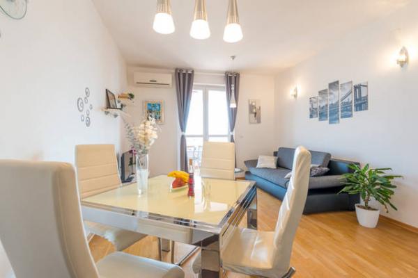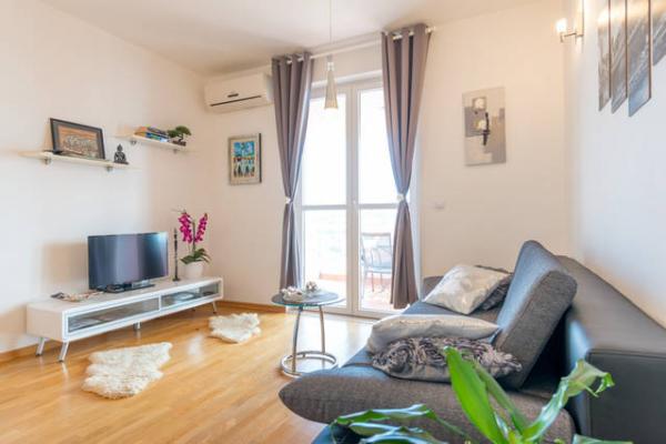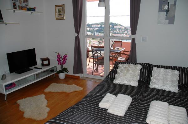 El apartamento está situado cerca del puerto de Gruz y una terminal de pasajeros y está a 100 metros de la estación de autobuses. Cuenta con un aparcamiento privado. Apartamento amueblado moderno en un edificio residencial, situado en el pueblo de Gruz, a 4 km del casco antiguo de Dubrovnik. El balcón ofrece una hermosa vista de la bahía de Gruz. El apartamento es de 45 m2, aire acondicionado, cuenta con un segundo televisor de pantalla plana, TV vía satélite y conexión inalámbrica a Internet. Se compone de una sala de estar, comedor, cocina totalmente equipada (cocina, horno, lavavajillas, frigorífico, congelador, vajilla, las especias, cafetera, tostadora) y baño con ducha (hay una lavadora y un secador de pelo) y habitaciones ( tiene una superficie de hierro y un tablero). Sofá Bienvenidos a la hermosa Dubrovnik!