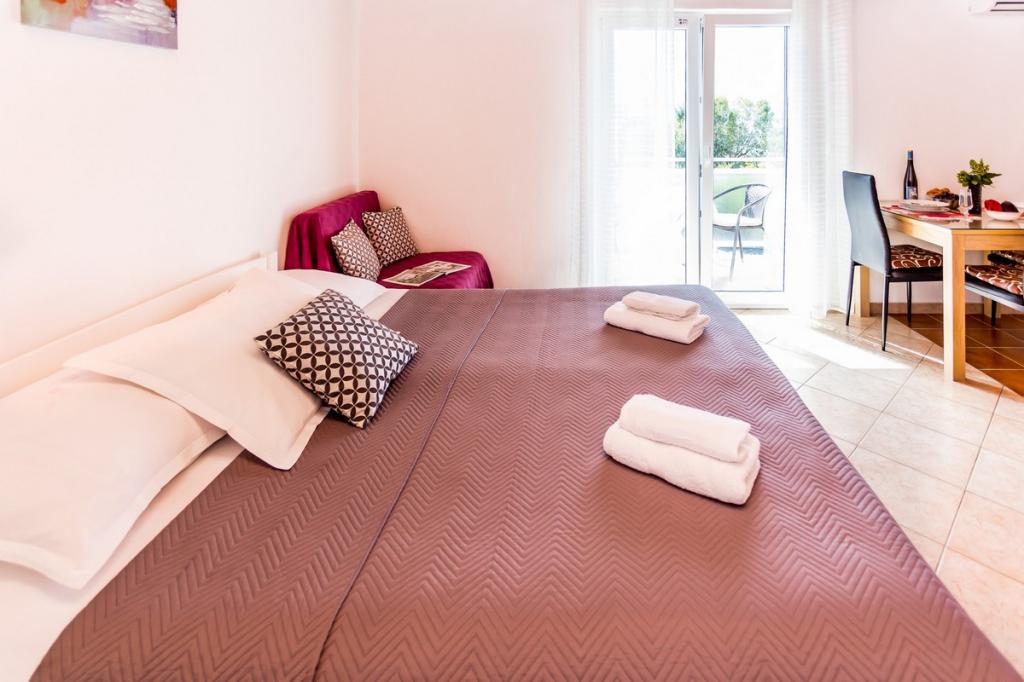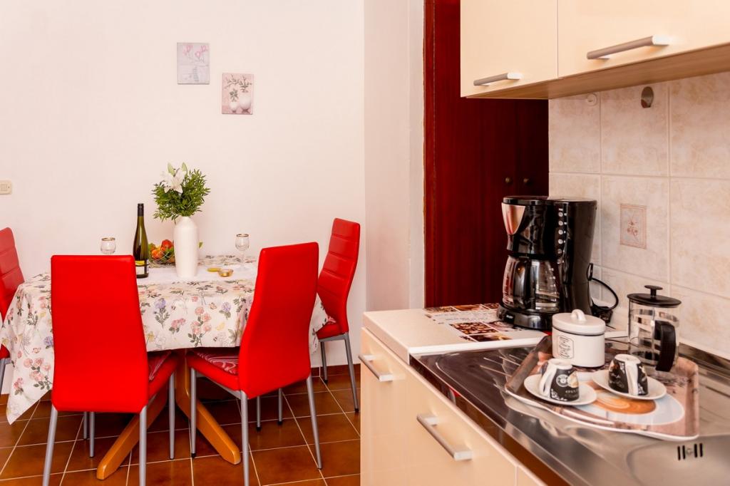 Los apartamentos Miroslav Vojnović están situados en el centro de la ciudad turística de Duće, en la ribera de Split-Omis. Casa familiar con un amplio jardín y una maravillosa vista al mar. La hermosa playa de arena es ideal para unas vacaciones familiares con niños. La playa está a sólo 50 m de la casa. Los huéspedes tienen a su disposición cinco cómodos y equipados apartamentos que le proporcionarán la sensación de estar en casa mientras se encuentra de vacaciones. La llegada es posible cualquier día de la semana. Los apartamentos están disponibles a partir de las 10:00 horas del día de llegada. Esto permite a los huéspedes quedarse más tiempo y ajustar el plan de viaje a sus necesidades. El gran apartamento A5 para 4+2 personas con terraza privada se encuentra en la planta baja de la casa. Otros cómodos apartamentos A1, A2, A3 y A4 para 2 personas se encuentran en el segundo piso de la casa y están equipados con aire acondicionado. También ofrecemos la posibilidad de combinar apartamentos más pequeños según las necesidades del huésped. Proximidad a los centros de ciudades más grandes (Split 20 km, Omiš 3 km).
