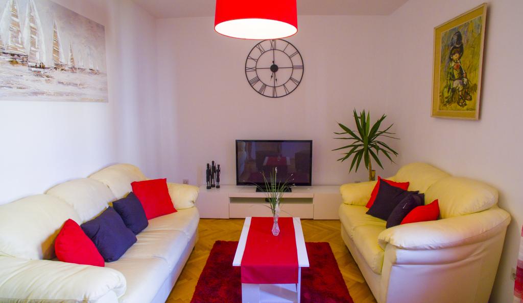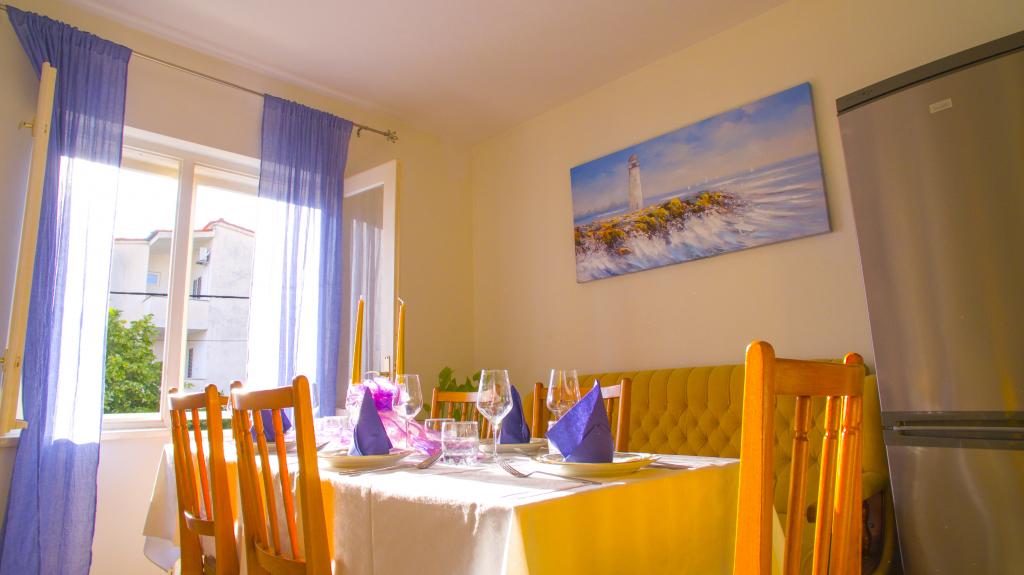 Apartment SJ se encuentra en Dugi Rat. Apartamento con zona de barbacoa y jardín. El apartamento está equipado con 2 dormitorios, sala de estar, cocina con comedor y horno y 1 baño. Un televisor de pantalla plana está disponible. El apartamento tiene una terraza y está a solo 2 minutos a pie del mar y de la playa más cercana. Si desea descubrir la zona, es posible practicar ciclismo en los alrededores. Split se encuentra a 20 km del SJ Apartments y Makarska está a 42 km. El aeropuerto de Split está a 36 km.