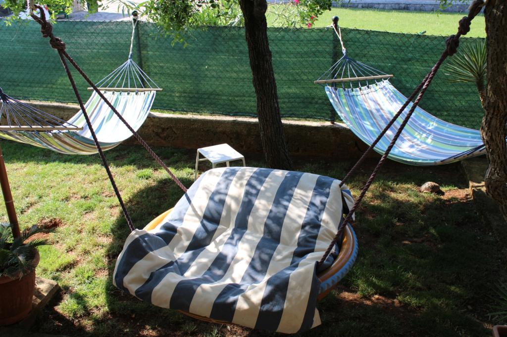 Recomiendo encarecidamente los apartamentos de Ingrid y Mauricio Bencic. Ubicación perfecta, a 5 minutos andando muy lento de la playa principal y del centro. Los apartamentos son limpios, amplios, equipados con todo lo necesario: lavadora, lavavajillas, menaje de cocina completo, toallas, colchonetas de playa, aire acondicionado, secadoras de ropa. En el jardín, columpios, hamacas, trampolín, red de bádminton y... tortugas paseando por la hierba Gran mesa de comedor al aire libre a la sombra. Propietarios amables, serviciales, con perros maravillosos. ¡Lo recomendamos de todo corazón y gracias por unas excelentes vacaciones!