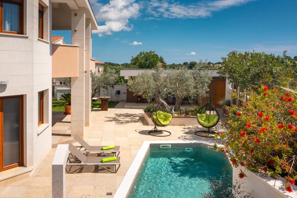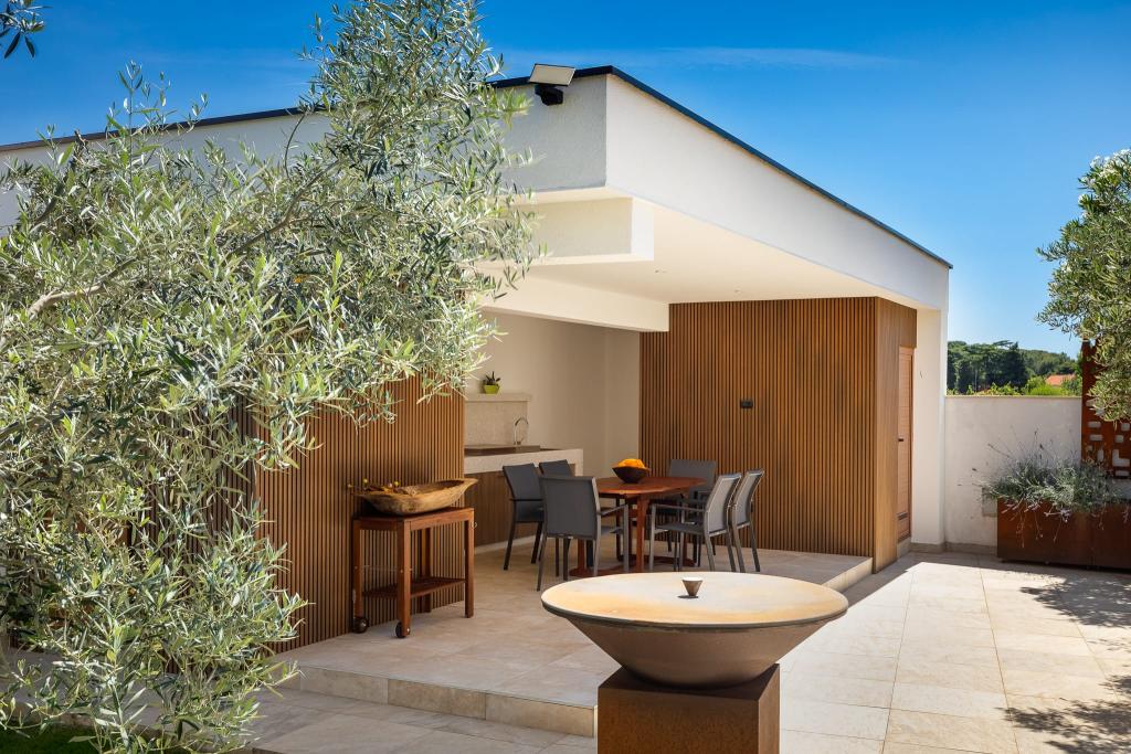 NUEVOS 2024 Apartamentos Luxury Villas Pliško Wellness & Spa **** Están situados en una zona tranquila de Fažana, a 500 metros del mar y representan el equilibrio perfecto entre la proximidad a la playa y la tranquilidad del entorno natural. La ubicación apartada de la Villa es un espacio ideal para el descanso y la relajación, ya sea que desee disfrutar de su café de la mañana mientras escucha la naturaleza, relajarse en la piscina de la Villa, dar un paseo hasta el mar, disfrutar de la paz de la tarde o pasar sus momentos románticos y relajantes en el agradable ambiente de la zona de bienestar. En un lugar como este, la cercanía del mar aporta energía y frescura, mientras que la ubicación apartada permite escapar de las multitudes y disfrutar de una relajación total. Villa Pliško ofrece 3 apartamentos de estilo inigualable, funcionalidad y un entorno libre de estrés. Centro Wellness & Spa para relax y uso de la piscina exterior. Nuestros huéspedes reciben el uso gratuito de 2 horas del área Wellness & Spa para 2 personas durante su estancia y el uso ilimitado de la piscina exterior de agua salada. La estancia en la Villa está destinada exclusivamente a adultos (+18 años)