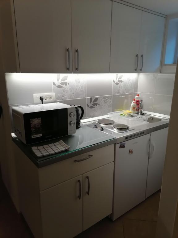 El apartamento estudio Zana está situado en el centro de una pequeña ciudad dálmata de Gradac en la Riviera de Makarska. Gradac se encuentra en el sur de Dalmacia, a 40 km de Makarska, donde se puede visitar el recientemente popular Skywalk. Además, Gradac se encuentra a 13 km de los lagos Baćina y a 35 km de la desembocadura del río Neretva. En todo el municipio de Gradac puede pasar sus vacaciones paseando junto al mar por los cinco lugares del municipio. El estudio en sí está a sólo 20 metros de la playa. También cerca hay una tienda, así como cafés y restaurantes cercanos. Puede disfrutar de su café de la mañana en el patio del apartamento.