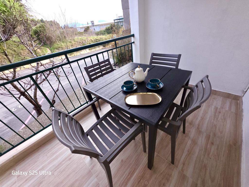 Nos alojamos en el apartamento de Ariana en el segundo piso. Es bastante espacioso y está equipado con todo lo necesario, incluso una lavadora. Ambas habitaciones tienen aire acondicionado, lo que nos dio privacidad porque no teníamos que dejar la puerta de la habitación abierta. El balcón tiene una hermosa vista al mar y la montaña, es lo suficientemente grande como para cenar en él, da al lado tranquilo por donde no pasan los autos. El estacionamiento es seguro en el patio de la casa. Nos encantaría volver de nuevo.