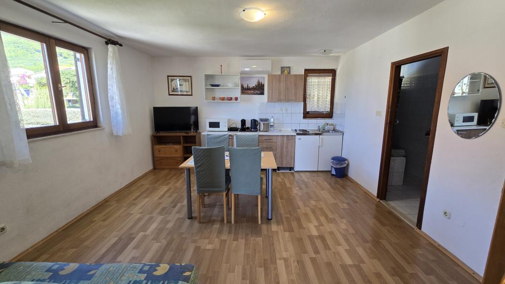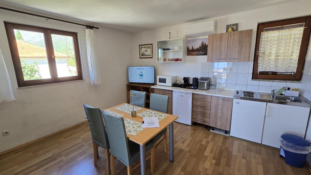 Los Apartamentos Lora son apartamentos de gestión familiar ubicados en una zona tranquila de Gradac, a solo 100 metros del mar y a pocos minutos a pie del centro. El complejo consta de cinco apartamentos con decoración moderna y totalmente equipados, ideales para una estancia agradable en pareja o familia. Cada apartamento cuenta con su propio balcón o terraza, y el espacio interior está diseñado pensando en la funcionalidad y la comodidad. Los huéspedes tienen acceso a servicios adicionales como bicicletas, tablas de paddle surf y equipo de playa, lo que permite unas vacaciones activas y relajadas sin coste adicional. El patio del complejo está limpio y bien cuidado, ideal para relajarse y disfrutar del aire libre, y todo el complejo ofrece privacidad y un ambiente acogedor. Su ubicación permite un acceso rápido y fácil a la playa principal, el paseo marítimo, las tiendas, la panadería, el mercado y los restaurantes, sin necesidad de coche. Los Apartamentos Lora son la opción ideal para quienes buscan un alojamiento tranquilo, cerca del mar y del centro, y un trato personalizado.