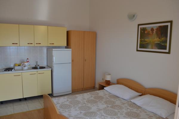 La propiedad muy bien cuidado, limpio y bien mantenido. Se necesita Las habitaciones llenas de equipos (aire acondicionado, tv, etc.), cocina con todo eso. Balcón con mesa y sillas. Toallas reemplazado por. necesita. Posibilidad de aparcar el coche en la propiedad. Pequeño jardín con un columpio-cama. La playa está a sólo aprox. 250 m (5 min. A pie) a tiendas ok.150m. La región es muy tranquilo y silencioso. La casera muy servicial, amable y servicial. Estancia muy agradable y sin obstáculos. Recomendaría los apartamentos MIRTA!