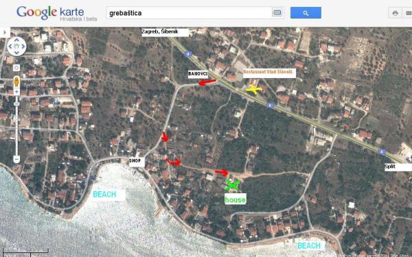 Grebastica es un pequeño y pintoresco lugar ubicado en la bahía del mismo nombre, entre Sibenik y Primosten. Las playas son de guijarros con mar cristalino. El lugar es ideal para unas tranquilas vacaciones familiares. Alquilamos 1 cómodo apartamento en el 1er piso:, tamaño 70 m2, que consta de: 2 habitaciones con camas dobles (posibilidad de camas supletorias), baño con inodoro (ducha), sala de estar y cocina (nevera con congelador), terraza 20 m2 con vista al mar. El apartamento tiene aire acondicionado, TV vía satélite, acceso a Internet Wi-Fi, parrilla, jardín ... También ofrecemos un estudio recientemente renovado para 2 personas. ¡Bienvenido! Tus anfitriones: Mirko y Jadranka; tel: +385 95 832 3015