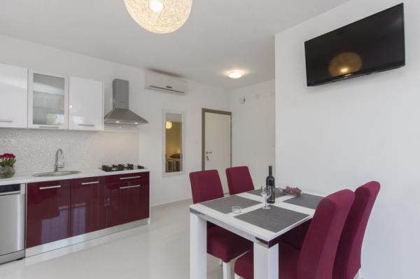 En grebaštica, un pueblo situado a medio camino entre Primosten y Sibenik oferta de alquiler de 6 apartamentos modernos y totalmente equipados. Nuestra casa está situada en una zona tranquila, en una arboleda rara vez asentado, por lo que es ideal para familias con niños pequeños debido a la abundancia de terrenos para jugar alrededor de la casa. Desde el centro y que se encuentra a unos 3-4 minutos a pie. El restaurante está muy cerca. Nuestra oferta incluye apartamentos en alquiler para 4-7 personas. Los apartamentos son modernos, todos los apartamentos tienen balcón o terraza, y están equipadas con todos los equipos y dispositivos necesarios con aire acondicionado. Hay conexión a internet wi-fi. A petición puso cuna. plaza de aparcamiento para coches, desde el exterior, hay ducha, casa de la parrilla, tenis de mesa ... Le deseamos una cálida bienvenida.