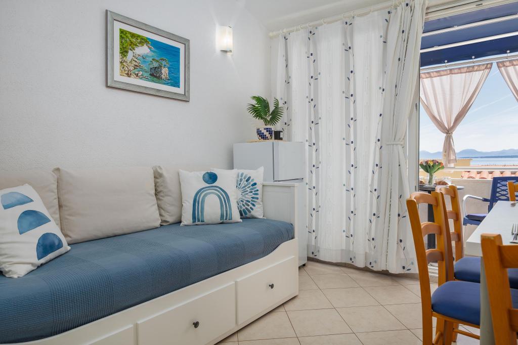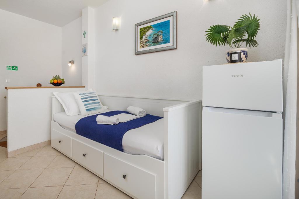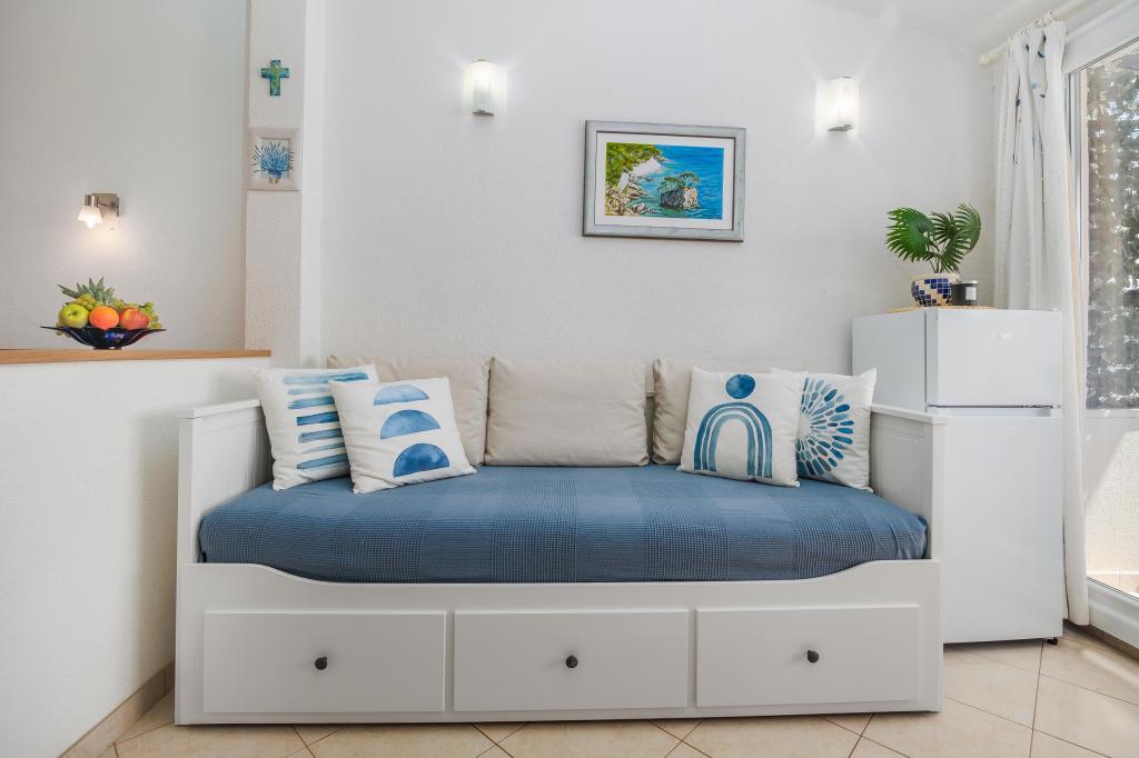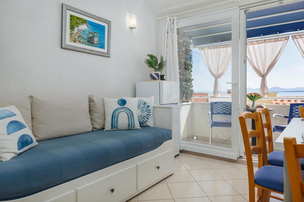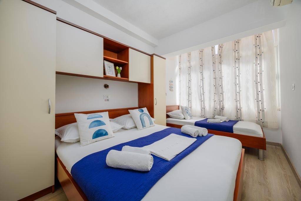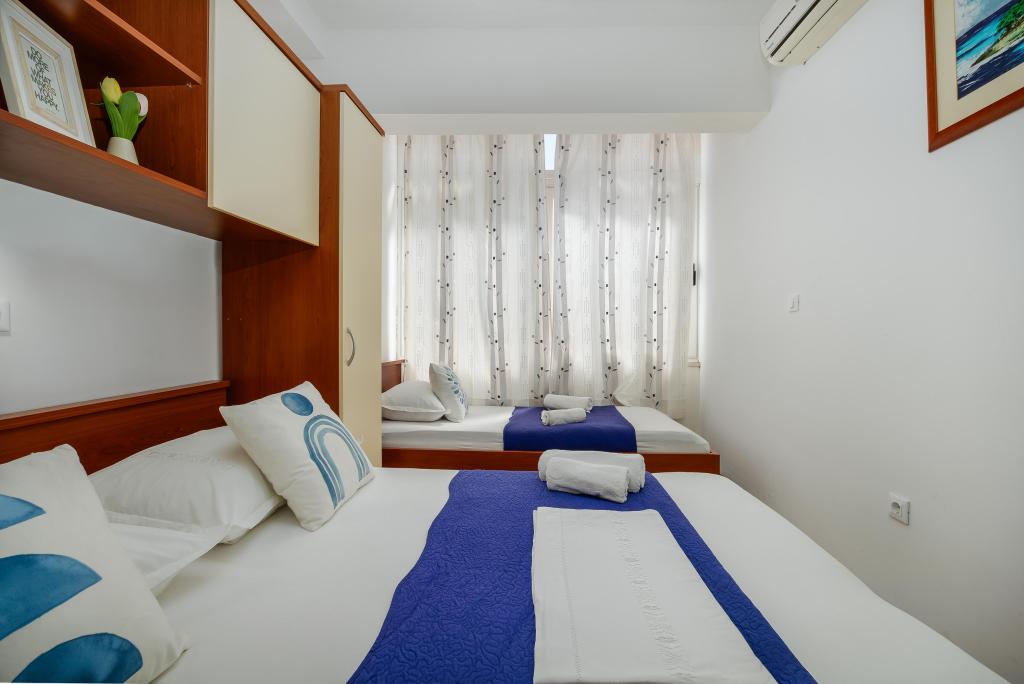 El apartamento Blue Lagoon goza de una ubicación privilegiada, a tan solo 30 metros del mar y de la playa principal, en pleno centro de Igrana. Todo lo necesario para unas vacaciones perfectas (restaurantes, cafeterías y tiendas) está a pocos pasos, sin necesidad de coche. Este moderno apartamento de dos plantas ofrece un alojamiento confortable para 3+1 personas. El balcón con vistas crea un ambiente especial, ideal para disfrutar de un café por la mañana o relajarse al atardecer junto al mar. El apartamento está totalmente equipado para una estancia sin preocupaciones (WiFi, aire acondicionado, cocina, salón confortable) y, gracias a su distribución en dos plantas, ofrece mayor privacidad y comodidad. Su ubicación en el centro de la ciudad permite disfrutar de unas tranquilas vacaciones junto al mar, con todos los servicios al alcance de la mano. A 30 m del mar Balcón con vistas Centro de la ciudad WiFi y aire acondicionado Cerca de restaurantes y tiendas "Estaremos encantados de recomendarle las mejores playas y restaurantes de la zona "
