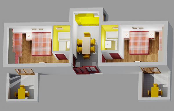 Apartamento para dos personas con dos camas supletorias (50 m2)