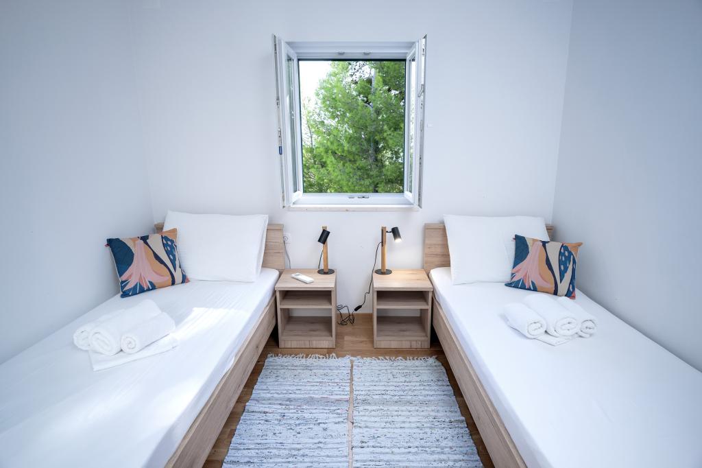 Apartamentos nuevos, modernos y confortables en Ivan Dolac. Están situadas en una zona tranquila del pueblo con casas familiares, a sólo unos minutos a pie de la playa. Hay dos apartamentos y un estudio en el edificio.