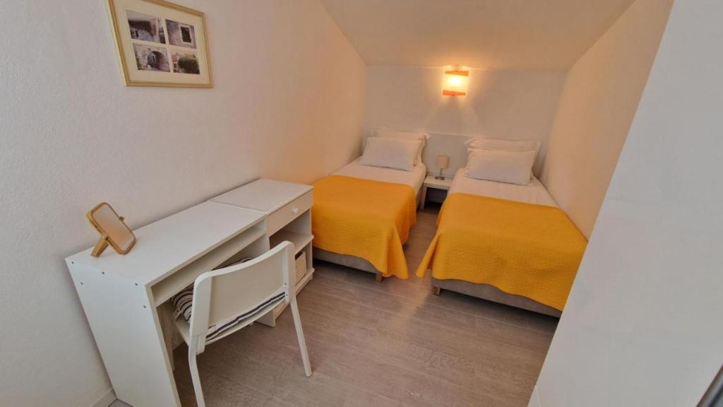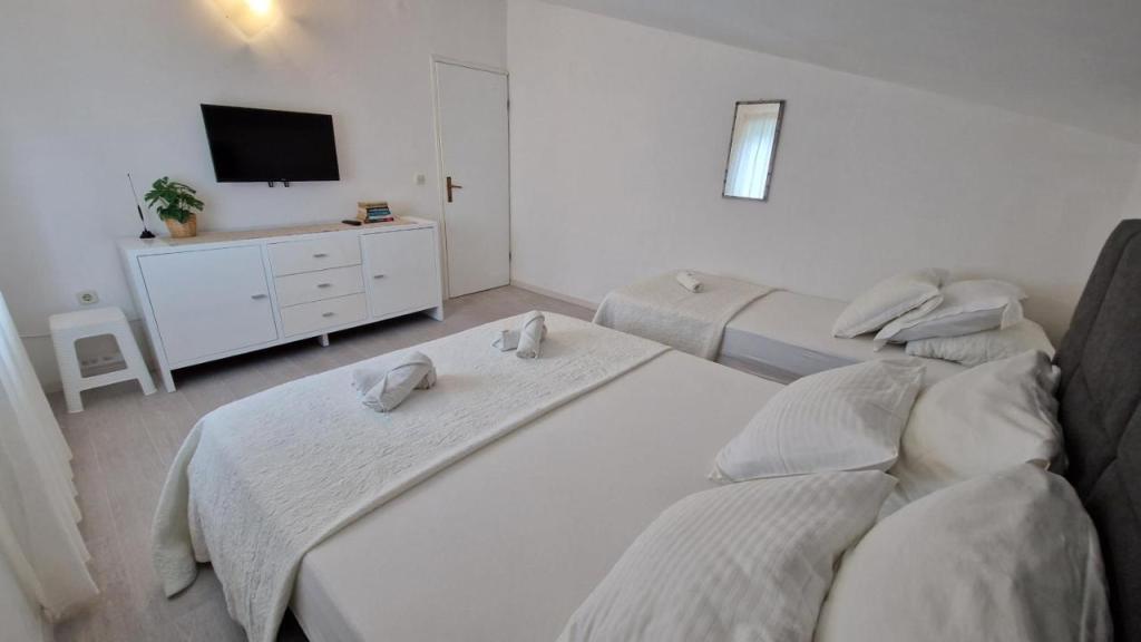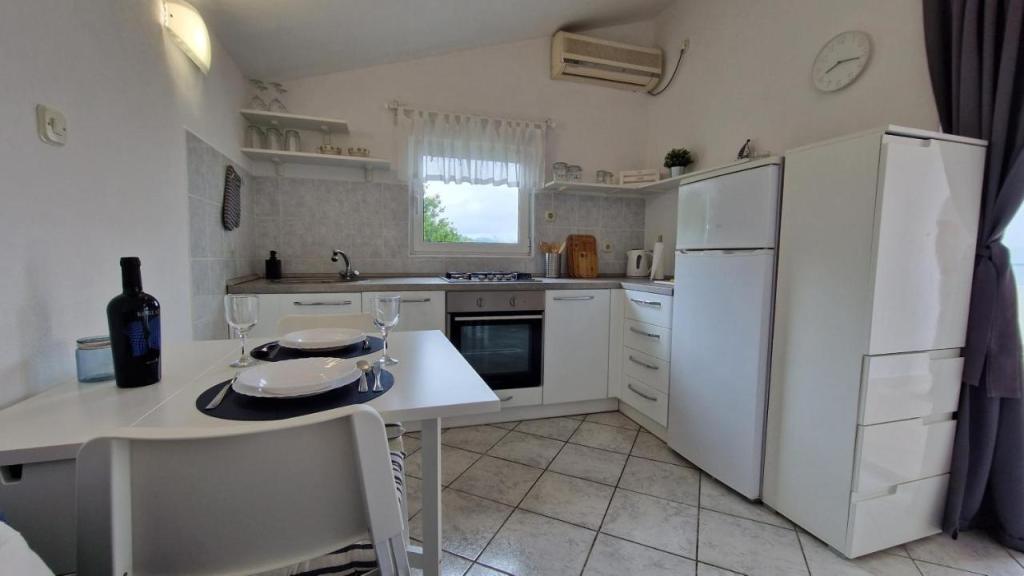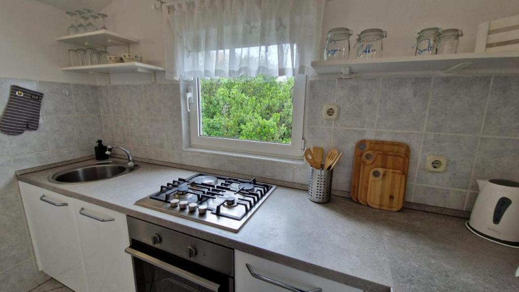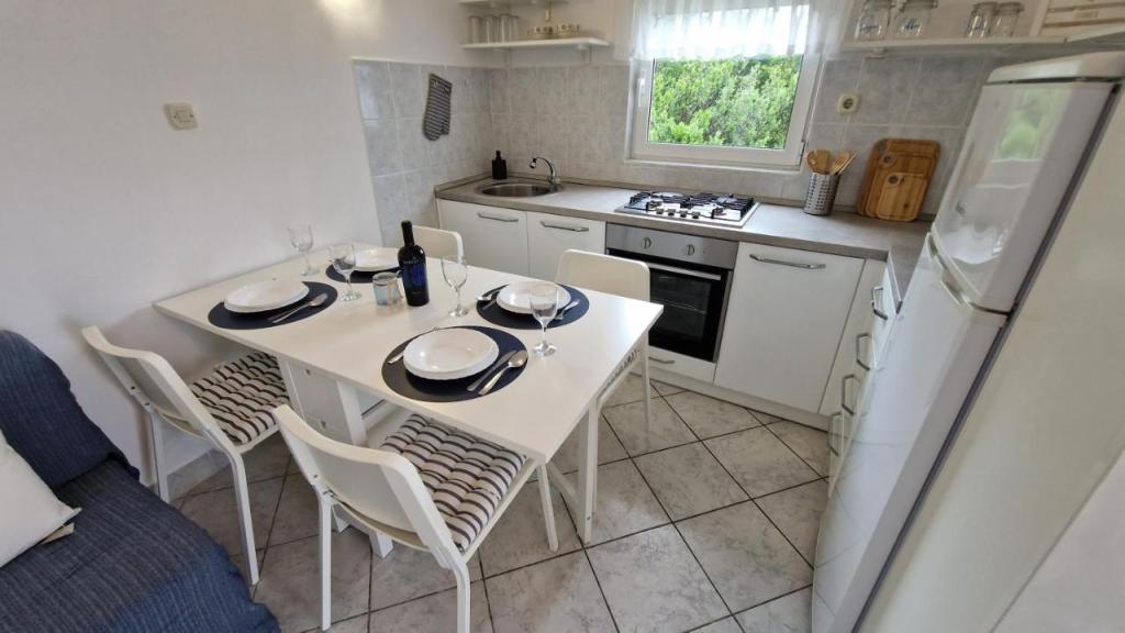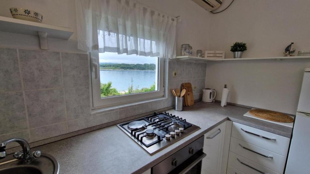 Disfrute de sus vacaciones a solo 5 metros del mar en la tranquila bahía de Knež, en la isla de Iž. Este cómodo apartamento de dos dormitorios ofrece una amplia terraza con hermosas vistas al mar y al archipiélago de Zadar, ideal para tomar un café por la mañana o relajarse por la noche. El apartamento cuenta con aire acondicionado y está totalmente equipado para una estancia cómoda: cocina con todas las comodidades necesarias, lavadora, wifi gratis, TV, escritorio, una cómoda sala de estar y baño privado. Los huéspedes también pueden utilizar el aparcamiento gratuito cercano. Hay una barbacoa en la terraza trasera. Ubicado en un entorno tranquilo y relajante, el apartamento es la opción perfecta para familias y quienes buscan unas vacaciones tranquilas junto al mar cristalino.