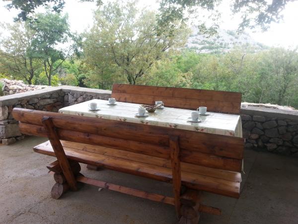 casa recién reformada en estilo rústico está situado a 3 km de Jablanac en un pequeño pueblo al que se accede directamente desde la carretera del Adriático. La casa está aislada, sin vecinos y las casas de los alrededores con una gran terraza, chimenea, mesa de madera con bancos y una gran madera de tilo centenaria que la casa proporciona sombra durante todo el día. La casa tiene un dormitorio, salón, baño y cocina, y tiene la capacidad de tirar de un sofá a la cama. Dormitorio contiene una pequeña cuna o niños pequeños y una silla alta. Es ideal para las personas que aman la paz y la tranquilidad. El mar está a 10 minutos en coche, donde entre nadar y tomar el sol debe estar seguro de visitar la maravillosa Zavratnica donde la costa todavía ver claramente el naufragio de la segunda guerra mundial y hasta la entrada del Parque Nacional de Velebit debe ser de 15 minutos. En cualquier caso, este lugar es ideal para personas que les gusta combinar la playa, el sol y el mar con excursiones y paseos al aire fresco de la montaña y no se necesita una gran cantidad de accionamiento.