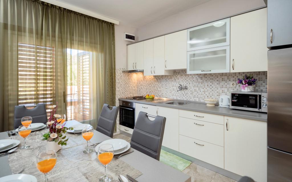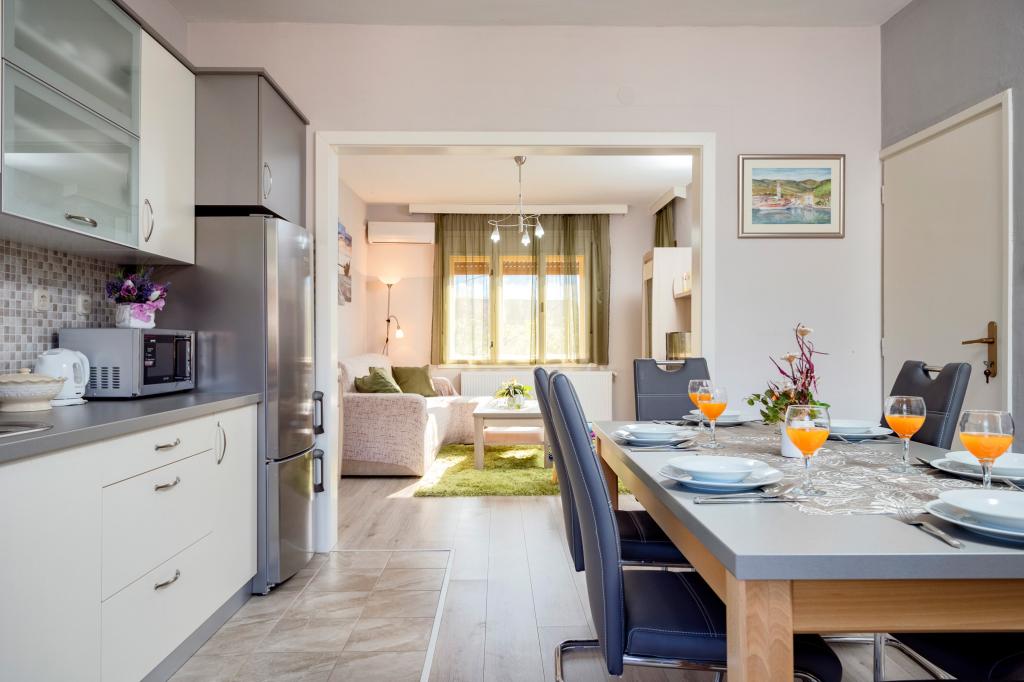 Apartamento totalmente amueblado y moderno para 6 personas, ubicado en el centro de Jelsa, en la isla de Hvar, ideal para familias con niños. Se encuentra en el segundo piso de la casa familiar y cubre un área de 85m2. El apartamento tiene dos habitaciones con balcón, baño, cocina, sala de estar con sofá cama. Estacionamiento gratuito y WI FI incluido.