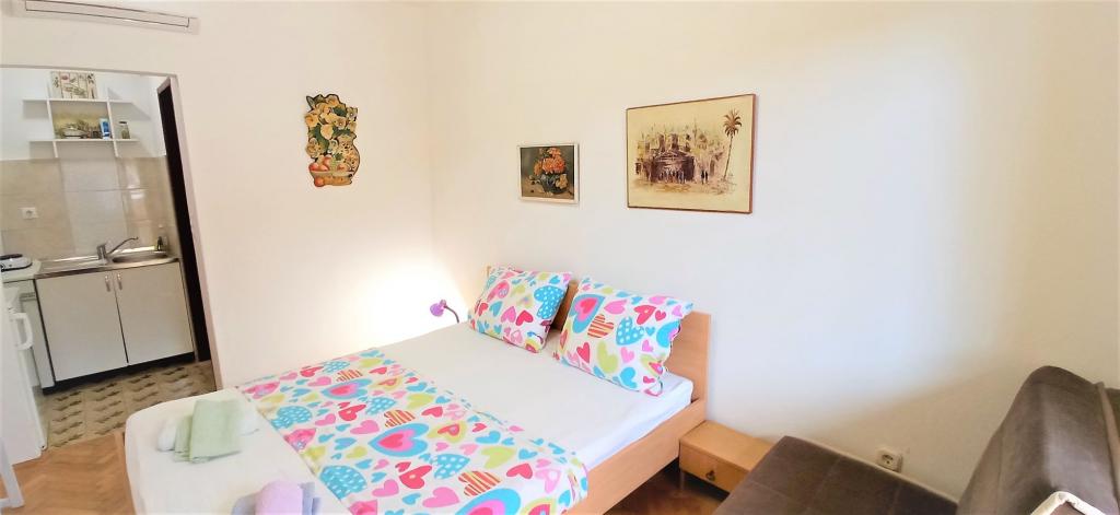 La casa está situada en una zona tranquila de Jelsa al lado de un bosque de pinos y el mar. El mar es de unos 70 m, y de varias playas está a sólo unos minutos de la casa. En nuestra casa ofrecemos: 3 apartamentos tipo estudio. Cada apartamento tiene un dormitorio, cuarto de baño y cocina, y una mesa y sillas en frente de la vivienda, al lado del jardín. Un estudio tiene una gran terraza. 2 habitaciones. Cada uno tiene su propia, aseo, cocina y balcón con mesa y sillas y una vista del mar. También es posible alquilar las dos habitaciones como un apartamento de una entrada común que está separado de los otros apartamentos. apartamento de 1 dormitorio con una sala de estar, cocina, comedor, balcón con vista al mar y terraza con mesa y sillas en frente de la vivienda. En la habitación con balcón y cama supletoria, un sofá en la sala de estar se puede convertir en una cama para dos personas.