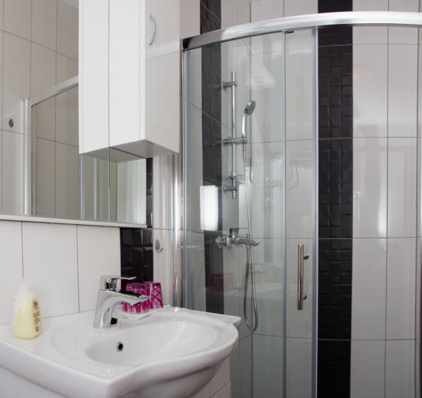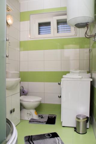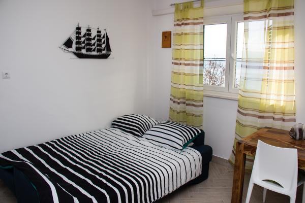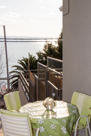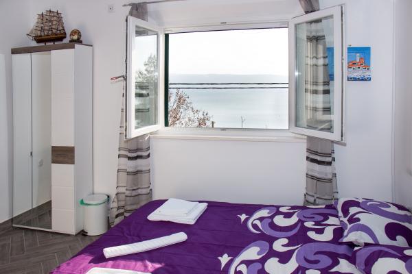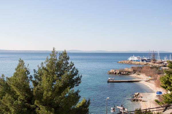El apartamento consta de dos habitaciones (cada habitación tiene una cama doble 198x180 y baño privado, además cada habitación está equipada con su propio aire acondicionado, TV y conexión inalámbrica a Internet) y una sala de estar independiente con sofá cama (200x160) con una cocina y privada cuarto de baño Todas las habitaciones y la sala de estar tiene una mesa de comedor. También apartamento tiene el uso de una terraza exterior que tiene una hermosa vista del mar y la isla de Brac. La terraza está equipada con mesas y sillas y sombrilla. El barrio es tranquilo y apacible, ideal para familias, la playa está al otro lado de la calle. La estación de autobuses se encuentra a 200 metros de distancia y los autobuses pasan cada 15 minutos a Split y Omis
