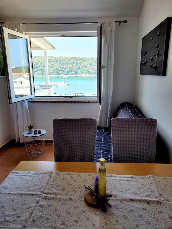 Villa Marija se encuentra en pleno centro del pequeño pueblo pesquero de Kampor. Se accede a la casa por una carretera con varias plazas de aparcamiento. Todos los apartamentos están completamente equipados y ofrecen una vista única al mar, a solo 30 metros. Una gran ventaja de este espacio es que sus hijos podrán jugar tranquilamente en nuestro patio (jardín), rodeado de flores, frutas locales y diversos juguetes.