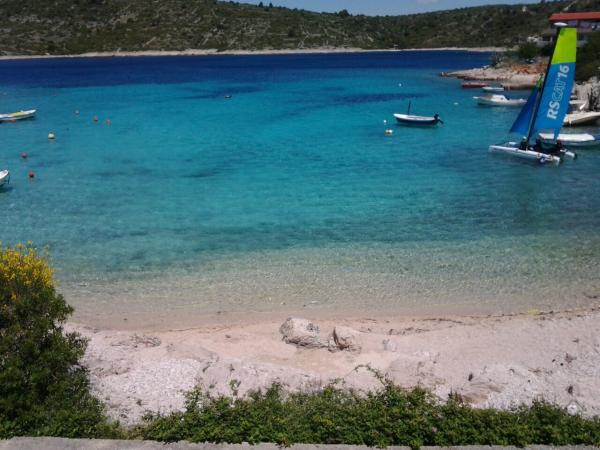 Los anfitriones son extremadamente amable y servicial. Todas las descripciones e imágenes son exactos; Nos sorprendió mucho, ya que estaba en vivo mejor y mejor de lo esperado. Apartamento y el medio ambiente están limpias y ordenadas, muy bien mantenido. El apartamento tiene 2 terrazas: más pequeña está disponible en los dormitorios y una vista de la calle y una pequeña vista del mar abierto; La segunda terraza es accesible desde el comedor y tiene una bonita vista de la bahía. La playa principal está muy cerca de la entrada es adecuado para niños pequeños y en realidad no tienen el mismo color que las imágenes. El centro de la bahía es de arena. En las inmediaciones del nombre de varias otras playas, no hemos probado. En la bahía se puede alquilar un bote de remos y el kayak en el mar se colocan trampolín y tobogán para la inflación. A lo largo de la playa hay un restaurante y un bar con precios asequibles, Tiendas en Kanica allí, pero todas las mañanas viene furgonetas, donde se pueden comprar básica (pan, bollos, leche, etc.). Los precios están bien ..