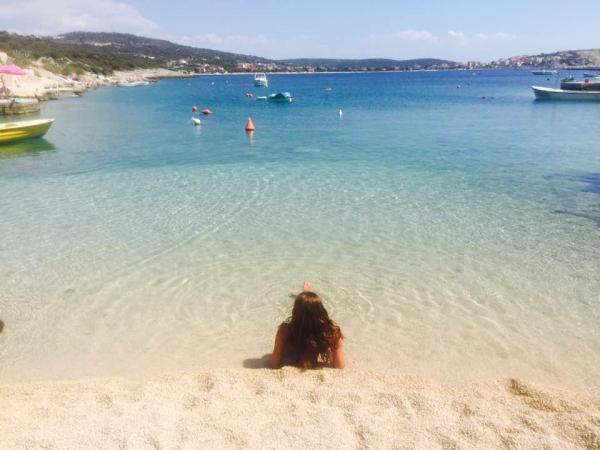 Nueva casa que consta de 4 unidades de alojamiento iguales. Lejos de la costa y la playa a unos 30 metros. También es ideal para relajarse en un ambiente tranquilo y pacífico. La habitación tiene una cama doble para 2 personas y en la sala de estar hay una cama grande para 2 personas. Todos los apartamentos son cómodos y están completamente equipados (wi-fi, aire acondicionado, parrilla, estacionamiento ...)