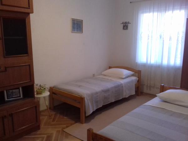 Apartamento totalmente amueblado en una zona tranquila de Kastel Luksic, lugares a lo largo de la costa a medio camino entre Split y Trogir, cuya antigua ciudad protegida por la UNESCO, y cerca de Solin (Salona antigua). El apartamento está situado en una casa de familia y es la única unidad de alojamiento que se alquila. Dispone de 2 habitaciones (la primera cama de la habitación doble, posibilidad de instalar una cama de niño, 2ª habitación con 2 camas individuales), sala de estar, cocina, comedor, cuarto de baño y una agradable terraza a la sombra de los árboles frutales. Puede utilizar la parrilla. El apartamento tiene su propia cubierta interior y aparcamiento de forma gratuita. Se necesita un poco menos de 10 minutos a pie del mar y de la estación de tienda de comestibles, restaurantes, bancos, oficinas de correos y autobús. Sobre el libre acceso inalámbrico a Internet, aire acondicionado, TV, radio-CD, lavadora, secador de pelo, plancha, ropa de cama, toallas ... El propietario vive en el primer piso y en cualquier momento está disponible.