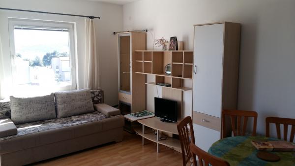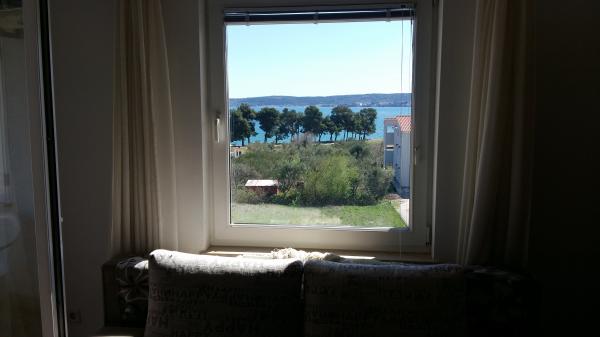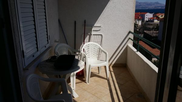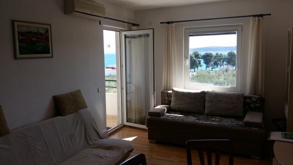 El apartamento está ubicado en el tercer piso de un edificio residencial en Kaštel Štafilić, distrito de Bile, cerca del Resnik. Está orientado al mar y ofrece una hermosa vista de toda la bahía de Kaštela, Split y las islas cercanas. Está ubicado en una zona tranquila al final de la calle, por lo que no hay ruido. El apartamento de 45m2 consta de pasillo, baño, dormitorio, gran salón con cocina y galería. En el dormitorio hay una cama grande para dos personas, en la sala de estar hay un gran sofá cama que se convierte en una cama grande para dos personas y otra más pequeña de tres plazas. La cocina está totalmente equipada, cafetera, lavavajillas, horno. En la logia es posible usar una parrilla eléctrica. El apartamento tiene un secador de pelo, aspiradora, plancha. El uso del clima no se paga extra.