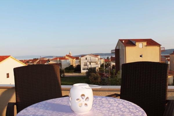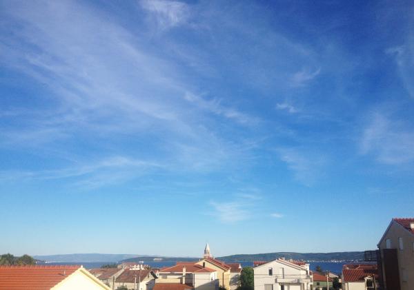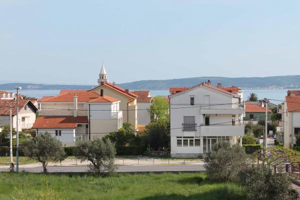 Apartamento **** está situado en el segundo piso de la casa. Amplio y moderno apartamento tiene una hermosa vista del mar y del centro (cca350-400m) .En Muy cerca se encuentra la playa (400 m), oficina de correos (300), la estación de autobuses (37 cobertizo Split-Trogir cca250m), supermercado (100 m) Doctor (60m) .. La casa tiene una terraza cubierta, barbacoa y césped lugar ideal para socializar y relajarse.
