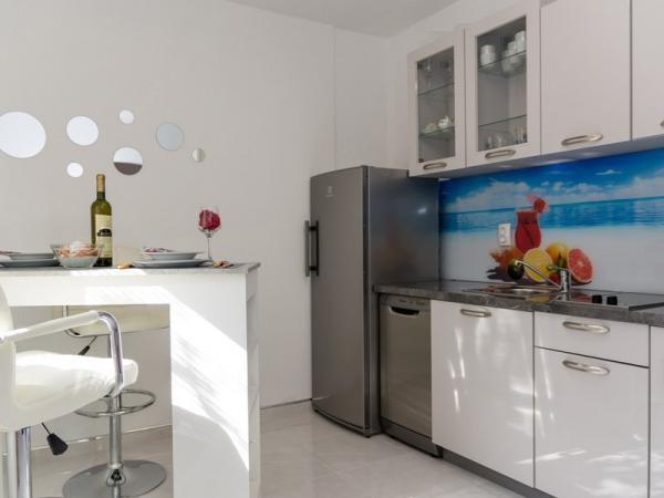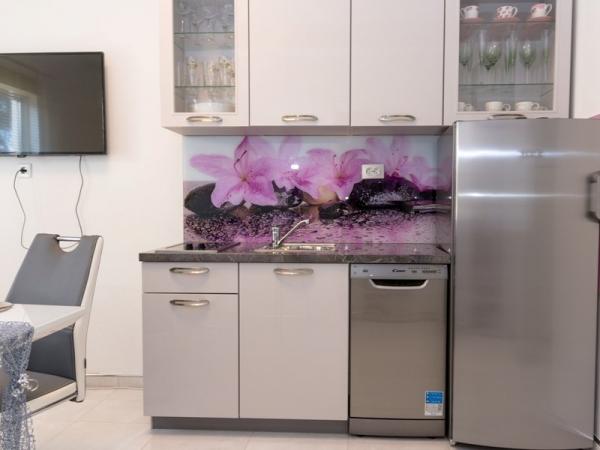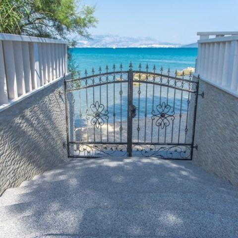 Los apartamentos '' Ljiljana '', totalmente equipados y modernamente equipados, con todos los electrodomésticos, incluidos los lavaplatos, así como todos los utensilios de limpieza, que forman parte del servicio y las necesidades de higiene (jabón, champú, papel higiénico) están en la superficie cubierta de hierba (aprox. 800 m2) con acceso directo a la playa, y la playa, que se originó en la misma parcela, es una pequeña cala de arena. La esencia de la ubicación en sí misma es que no está cerca de la carretera y que cada huésped tiene privacidad, y la superficie cubierta de hierba, así como la cala, son adecuadas para la alegría de los niños y para las vacaciones sin preocupaciones de sus padres. Junto a la apatía, hay una terraza cubierta (45 m2) con vistas a toda la bahía de Kaštela, para las tardes de la noche y durante el día, y el ruido del mar le da una nota especial durante la noche y el silencio que rompen las sinfonías. Además de la terraza, los huéspedes tienen una barbacoa y tumbonas sin cargo adicional. Dentro del apartamento hay un aparcamiento privado cubierto.