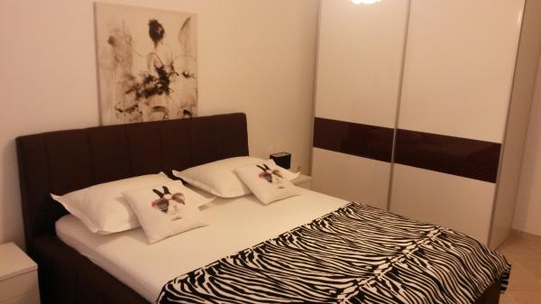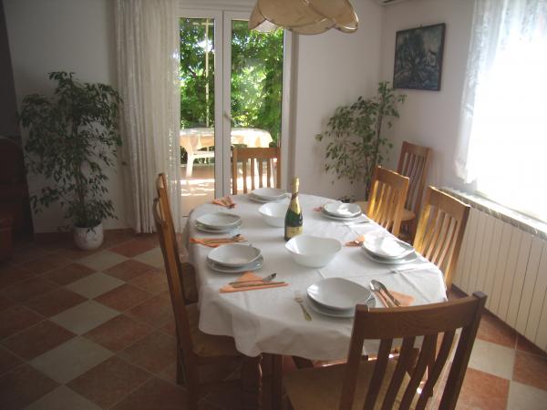 La casa de la familia en Kastel Stafilic en el hotel Resnik, biliz Trogir están situados bien equipado dos amplios apartamentos. Apartamento 1 (6 2) de 120 m2 consta de tres dormitorios, dos baños, un gran salón Borak, cocina, comedor y una gran terraza con paisaje verde en el jardín. Apartamento 2 (4 1) superficial de 70 m2 consta de dos dormitorios, baño, sala de estar con cocina. El apartamento tiene una amplia terraza con hermosa punto de vista sobre la bahía de Kastela. Los apartamentos están situados a 80 m del mar, y cerca hay un restaurante del hotel y canchas de tenis .. Los huéspedes pueden utilizar una parrilla, un jardín para niños y plazas de aparcamiento.