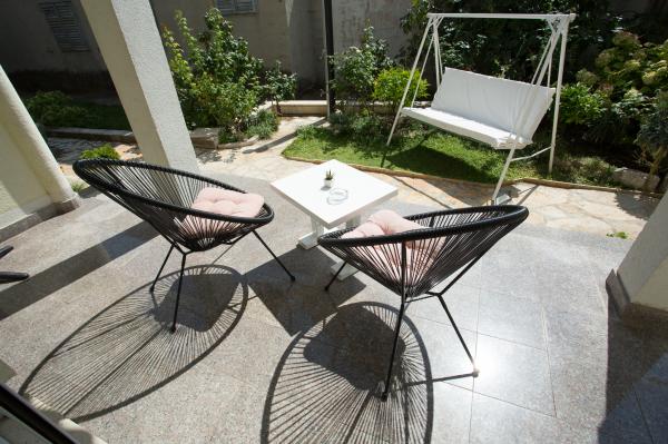 La anfitriona es muy agradable, comunicativa y servicial. El alojamiento es muy bonito, limpio, bien mantenido, huele a lavanda. La cocina tiene todo lo necesario para cocinar. Las fotos de la página son reales. La parrilla es de gas. La bañera de hidromasaje se sustituye por una clásica de esquina. El alojamiento está cerca del mar, tiendas, cajeros automáticos y autobuses a Trogir o Split. El mar y la playa están limpios y bien cuidados. Tabernas, bares, pastelerías, todo cerca de la playa. Se lo recomiendo a todo el mundo. Allí pueden dormir 7 personas sin ningún problema. Yo también le daría 10 estrellas.