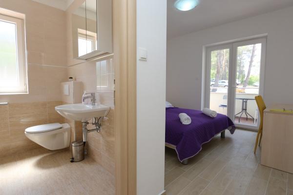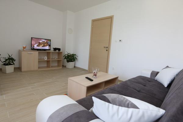 Casa con varios apartamentos. En la aldea de Soline, a 1 km del centro de Klimno, lugar soleado, a 70 m del mar, a 70 m de la playa, cruzar la calle. Para uso compartido: terreno de 800 m2. En la casa: acceso a internet, billar, futbolín (uso compartido). Aparcamiento junto a la casa en la parcela. Tienda 900 m, restaurante 1 km, playa de gravilla, playa de concreto 70 m. Apartamento de 67 m2, en el 1er piso. Salón-comedor 25 m2 con 1 sofá-cama doble y TV satélite. (TV de pantalla plana), aire acondicionado. Salida al balcón. 2 habitaciones, cada habitación con 1 cama doble (2 x 80 cm, 200 cm de longitud), ducha / bidet / WC y aire acondicionado. Salida al balcón. Cocina abierta (horno, lavavajillas, 4 placas de vitrocerámica, congelador, cafetera eléctrica, hervidor eléctrico). Balcón de 11 m2, balcón de 5 m2. Muebles de balcón. Disponible: caja fuerte, cuna. Internet (LAN inalámbrica [WLAN], gratis). Se admiten 1 mascota / perro.